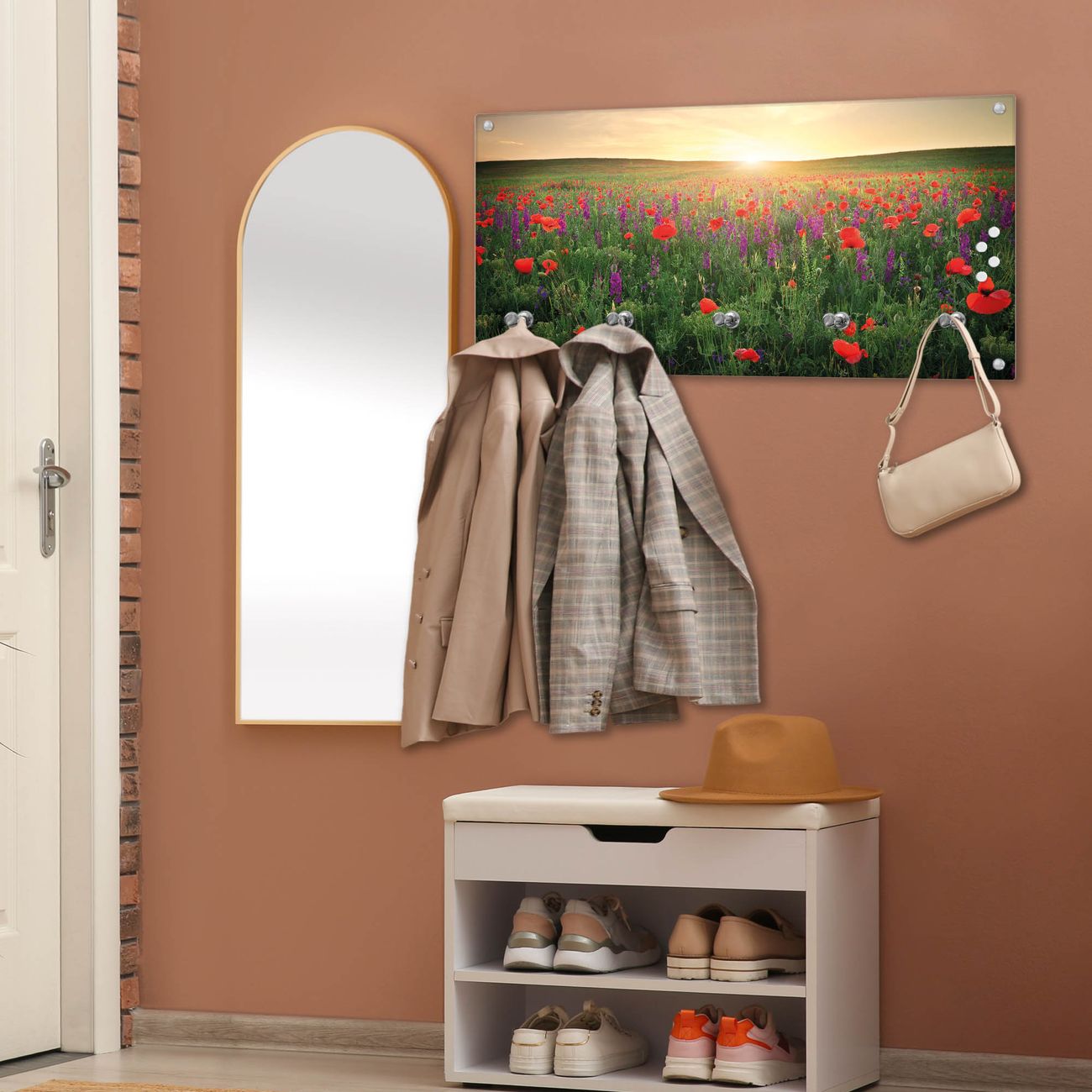 Wandgarderobe Glas 80x40cm Motiv Sommerfeld