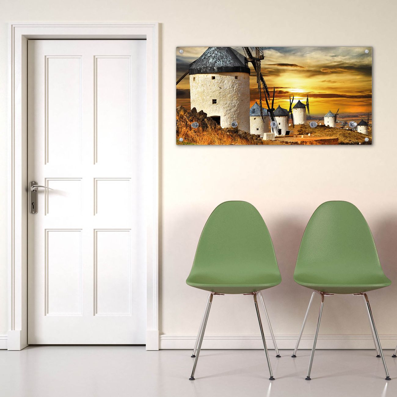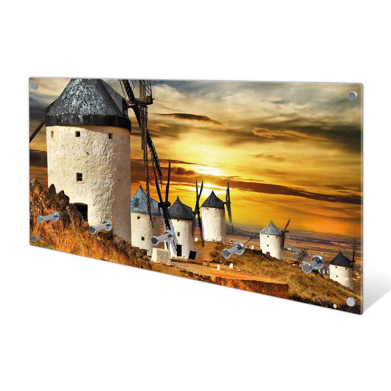 Wandgarderobe Glas 80x40cm Motiv Spanische Windmühlen