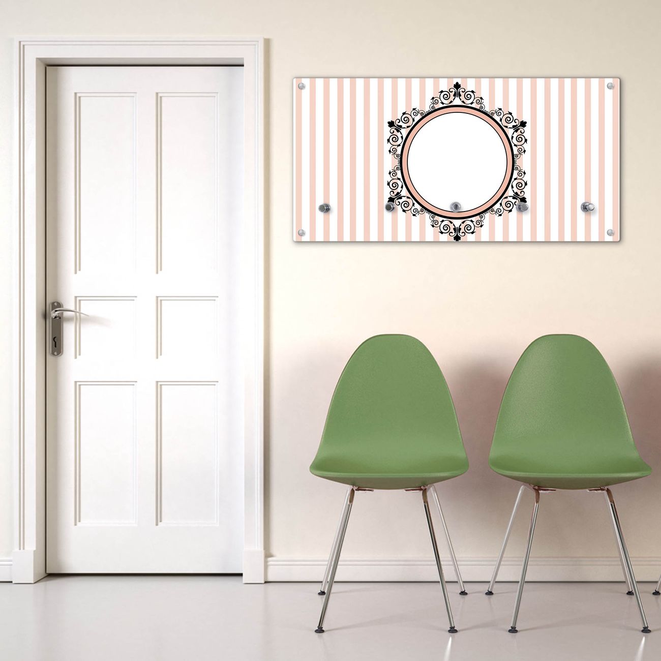 Bitte beachten Sie, dass an dieser Garderobe nur starke Neodym-Magnete halten! FUNKTION: Die banjado Wandgarderobe mit Motiv Spiegel ist Ihr täglicher Begleiter. Zuverlässig hängen hier Ihre Jacken und Mäntel griffbereit. Gleichzeitig ist die Design Garderobe magnetisch, Sie können Notizen anheften und durch das Echtglas ist Ihr Paneel auch beschreibbar und wieder abwischbar. DESIGN: Sie erhalten eine Garderobenleiste aus elegantem Echtglas mit dem Farbbrillanten Motiv Spiegel hinterklebt. Das Design ist zeitlos klassisch, ohne dabei auf Funktionalität zu verzichten. Suchen Sie aus einer Vielzahl von Motiven das für Ihre Einrichtung Passende aus. DETAILS: Die Flurgarderobe besteht aus 4mm gehärtetem Sicherheitsglas. Sie ist 80cm breit, 40cm hoch und 6cm tief. Die Garderobenhaken zur Selbstmontage präsentieren sich in Edelstahl-Optik, ebenso die Abstandshalter für die Wandmontage. Ihre neue Garderobe ist sofort einsatzbereit. NUTZEN: Ihre neue Garderobe hält nicht nur zuverlässig Ihre Kleidung, sie ist auch optisch ein Blickfang. Durch die magnetische Wirkung können Sie mit 4 beigefügten extrastarken Neodym-Magneten Notizen anheften und mit wasserlöslichen Kreidestiften oder Whiteboard-Markern auch Nachrichten hinterlassen. BANJADO: Wir sind ein kleines kreatives Team aus Sachsen und entwickeln Produkte die Design und Funktionalität verbinden sollen. Viel Freude mit Ihrer neuen Garderobe wünscht das banjado-Team!