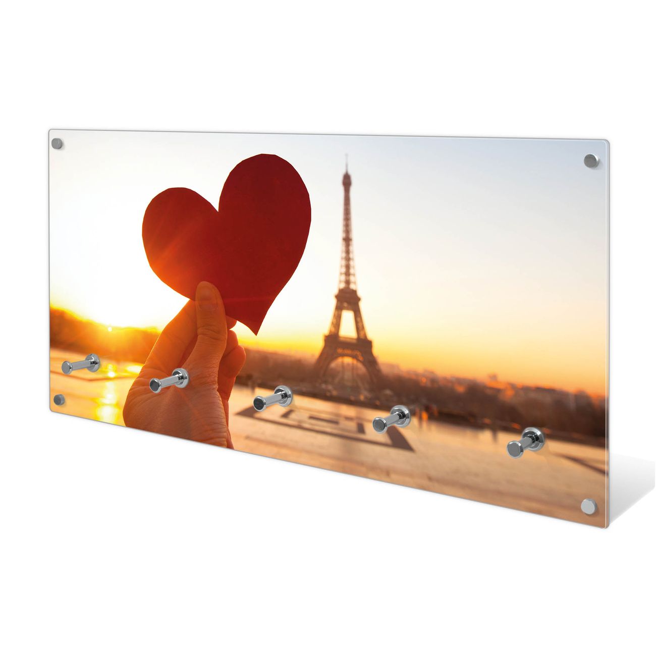 Wandgarderobe Glas 80x40cm Motiv Stadt Der Liebe