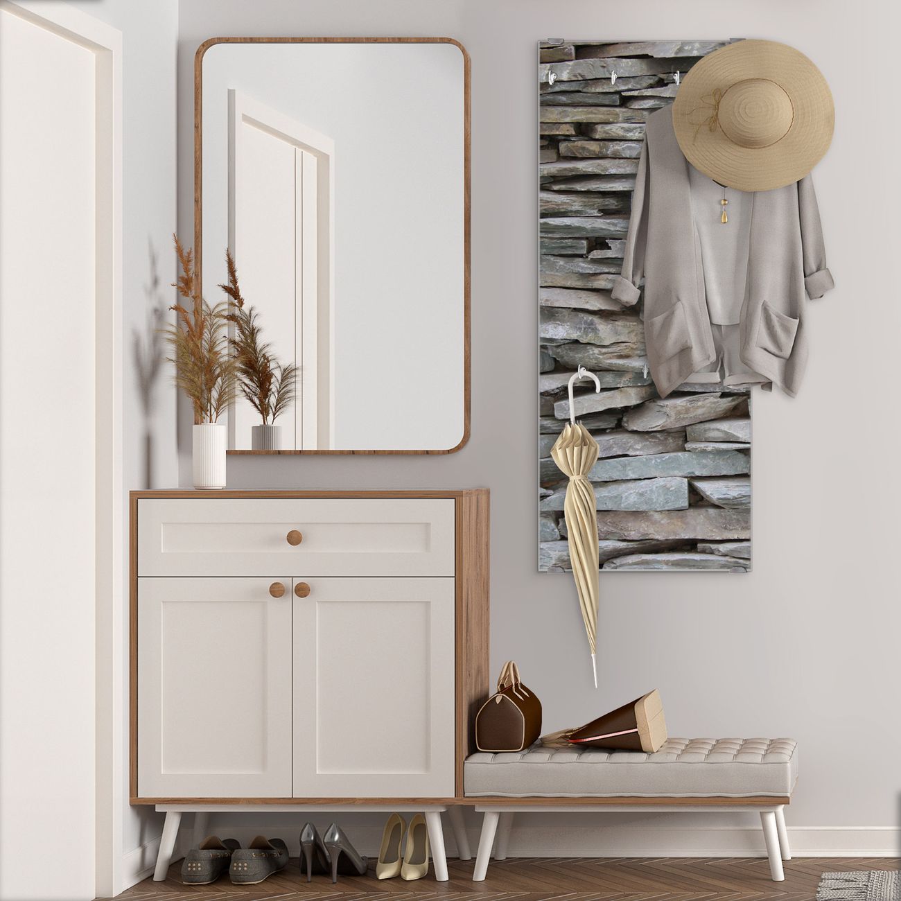 Flurgarderobe Glas 50x125cm Motiv Steinwand