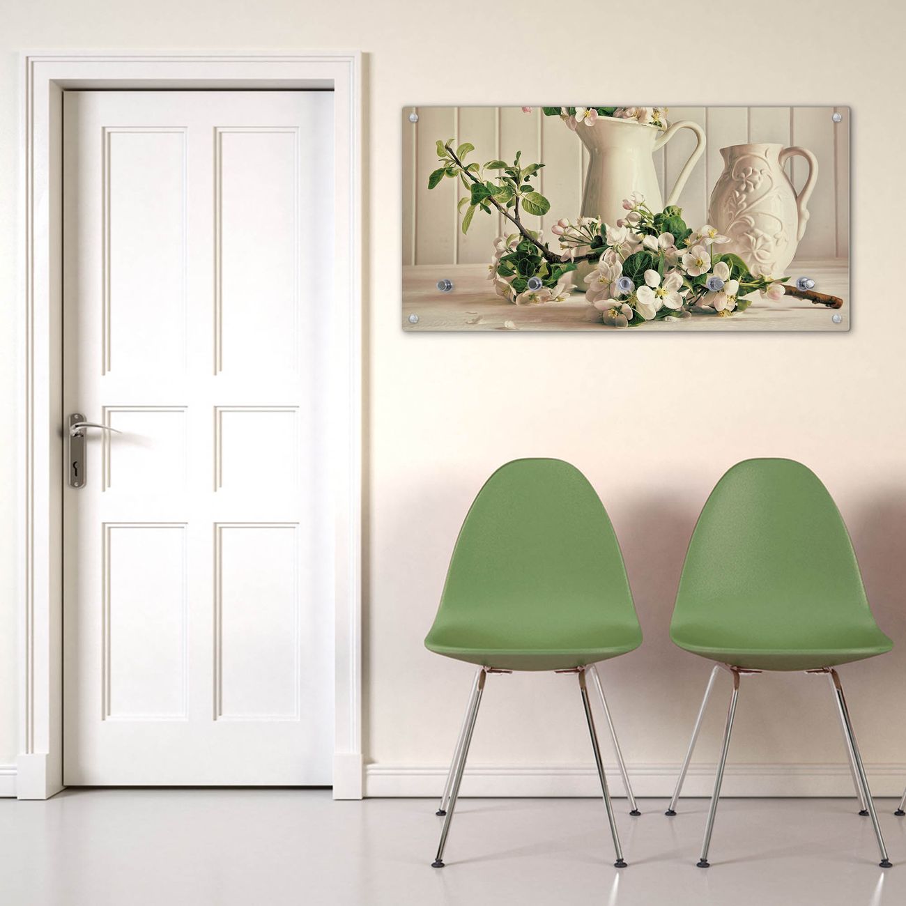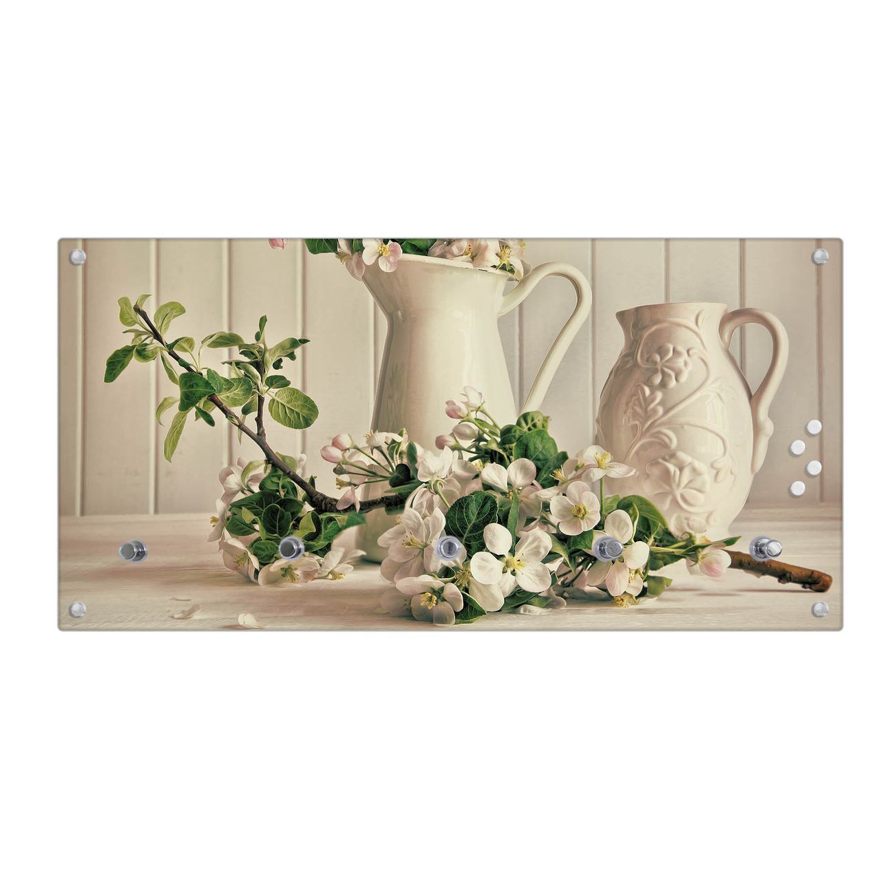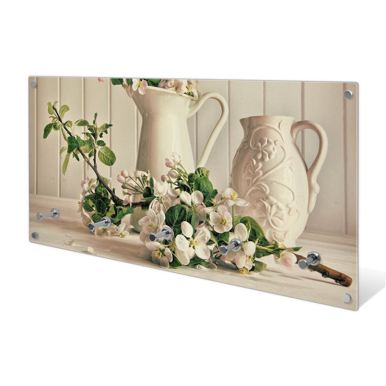 Wandgarderobe Glas 80x40cm Motiv Stillleben Kirschblüten