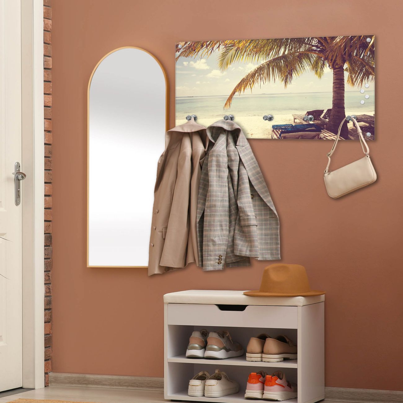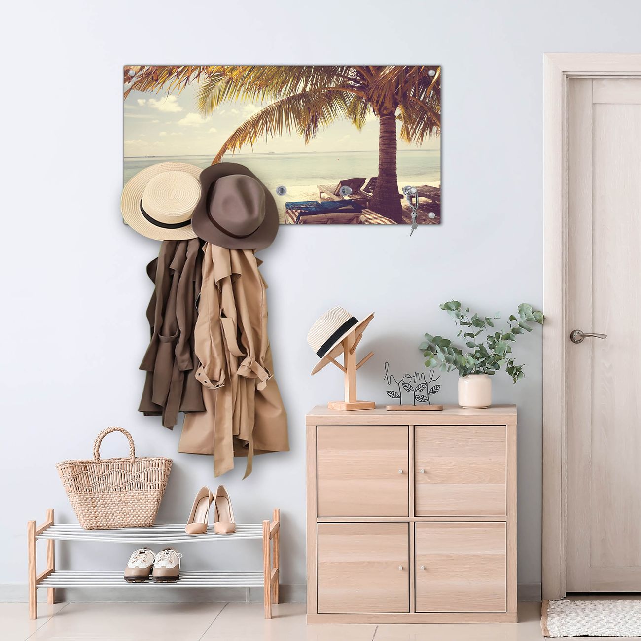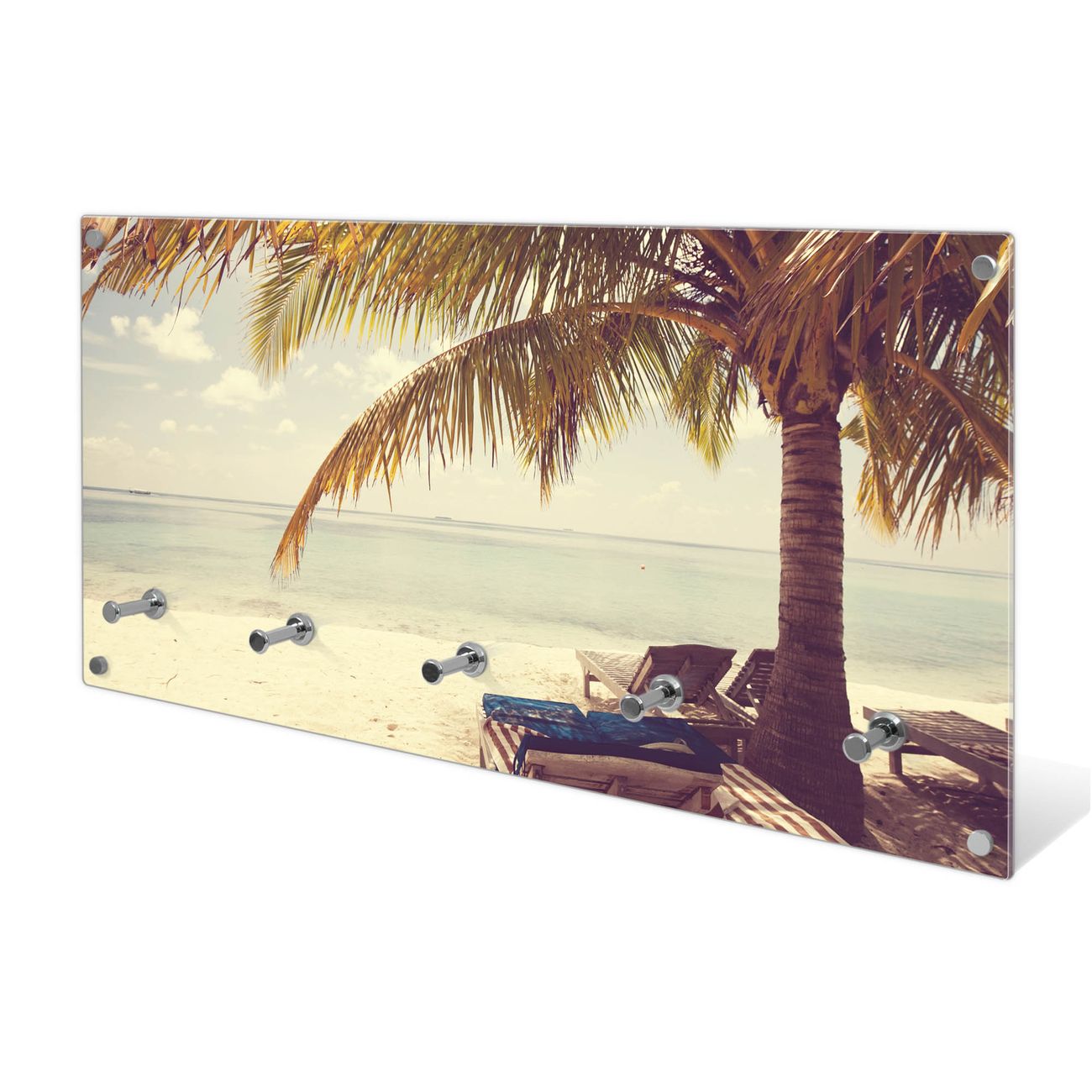 Wandgarderobe Glas 80x40cm Motiv Südseestrand
