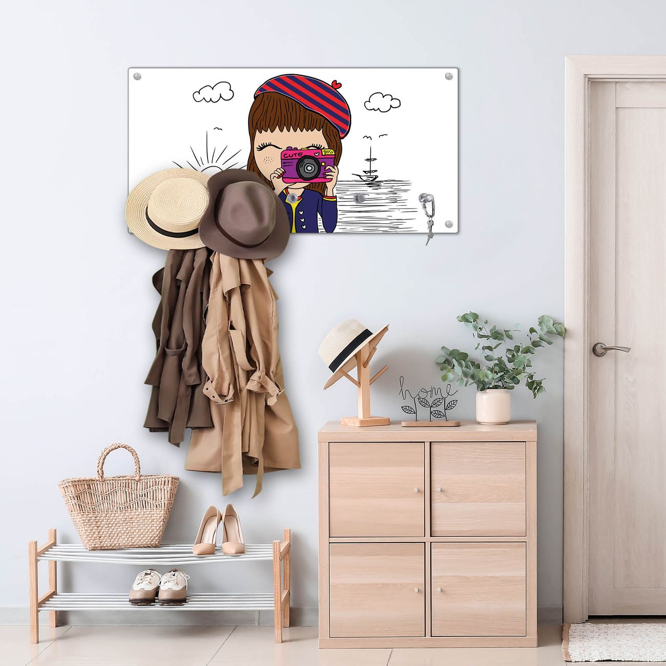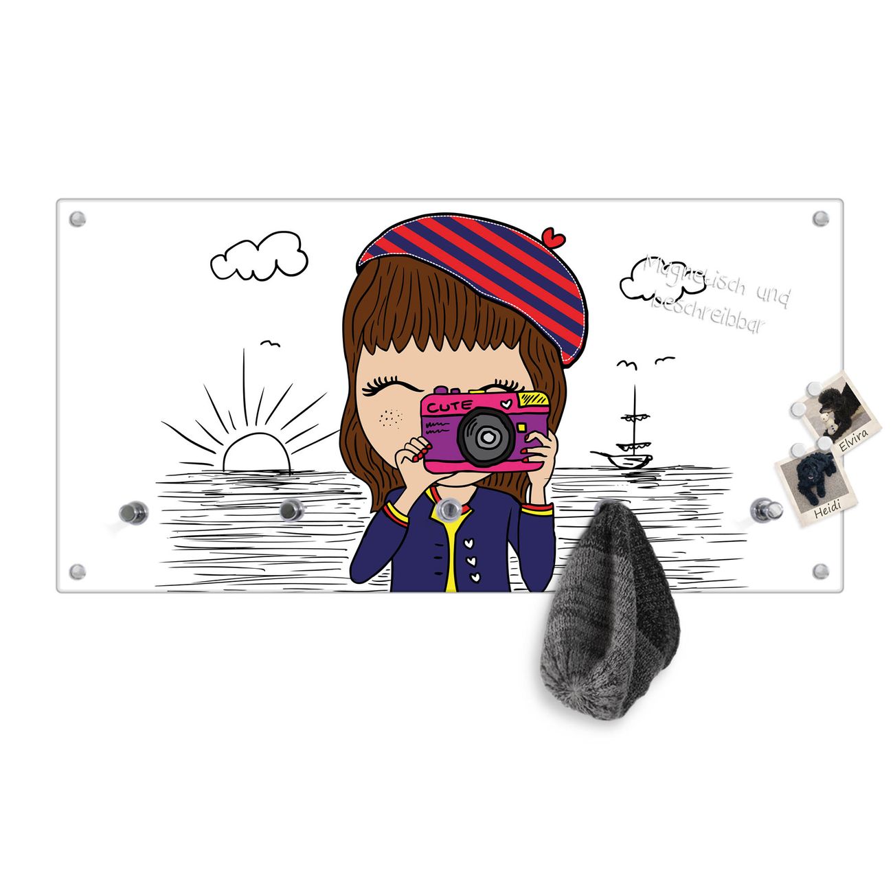 Wandgarderobe Glas 80x40cm Motiv Süße Kamera