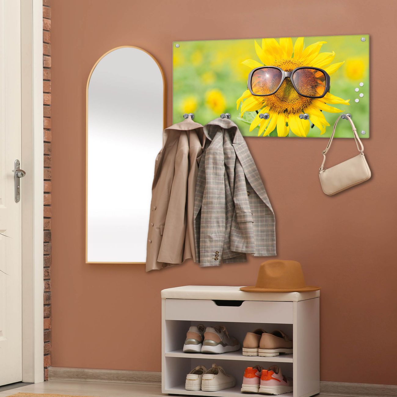 Wandgarderobe Glas 80x40cm Motiv Sunny