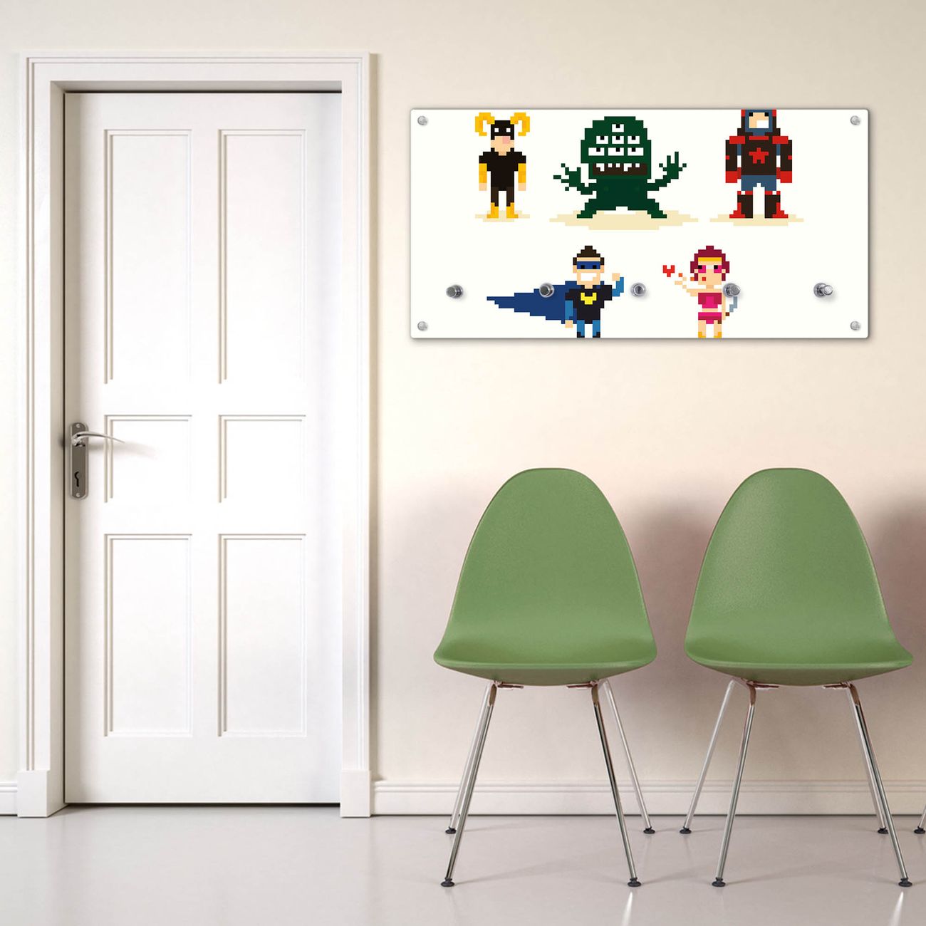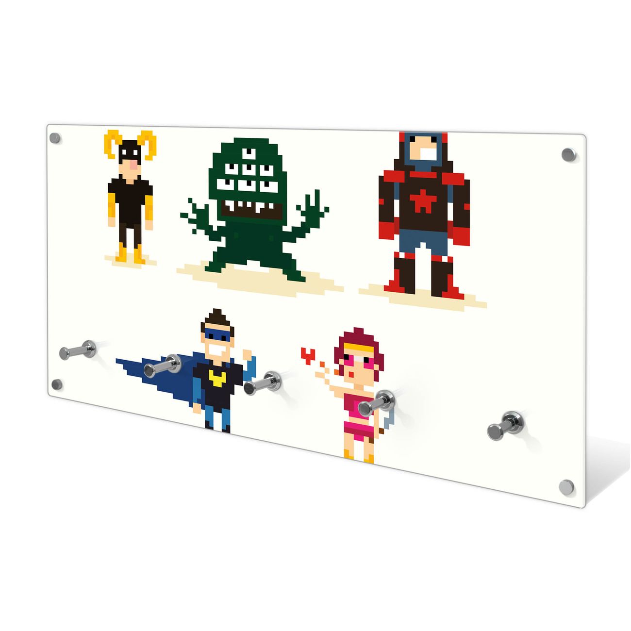 Wandgarderobe Glas 80x40cm Motiv Superhelden