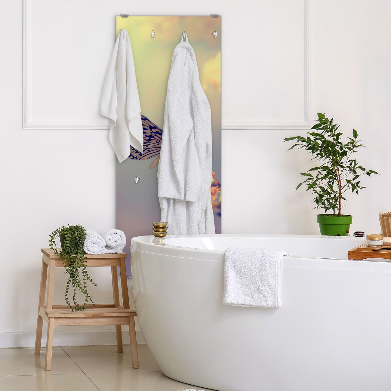 FUNKTION: Die banjado Wandgarderobe mit Motiv Tag Im Mai ist Ihr täglicher Begleiter. Zuverlässig hängen hier Ihre Jacken und Mäntel griffbereit. Das Echtglas ist Ihr Paneel auch beschreibbar und wieder abwischbar. DESIGN: Sie erhalten eine Garderobenleiste aus elegantem Echtglas mit dem Farbbrillanten Motiv Tag Im Mai hinterklebt. Das Design ist zeitlos klassisch, ohne dabei auf Funktionalität zu verzichten. Suchen Sie aus einer Vielzahl von Motiven das für Ihre Einrichtung Passende aus. DETAILS: Die Flurgarderobe besteht aus 4mm gehärtetem Sicherheitsglas. Sie ist 50cm breit, 125cm hoch und 6cm tief. Die Garderobenhaken zur Selbstmontage präsentieren sich in Edelstahl-Optik, ebenso die Abstandshalter für die Wandmontage. Ihre neue Garderobe ist sofort einsatzbereit. NUTZEN: Ihre neue Garderobe hält nicht nur zuverlässig Ihre Kleidung, sie ist auch optisch ein Blickfang. Durch das Glas können Sie an der Garderobe mit wasserlöslichen Kreidestiften oder Whiteboard-Markern auch Nachrichten hinterlassen. BANJADO: Wir sind ein kleines kreatives Team aus Sachsen und entwickeln Produkte die Design und Funktionalität verbinden sollen. Viel Freude mit Ihrer neuen Garderobe wünscht das banjado-Team!