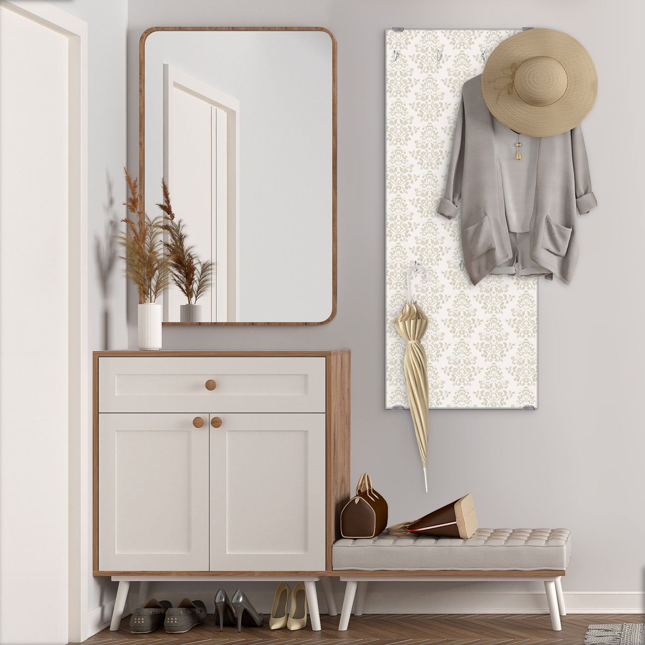 Flurgarderobe Glas 50x125cm Motiv Tapete Weiß