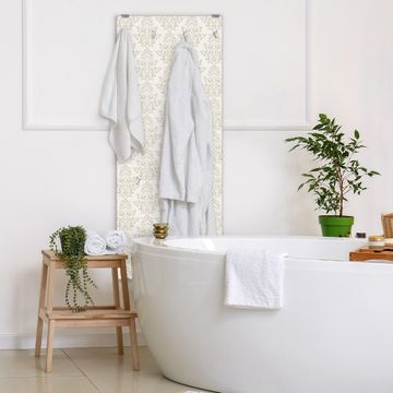 FUNKTION: Die banjado Wandgarderobe mit Motiv Tapete Weiß ist Ihr täglicher Begleiter. Zuverlässig hängen hier Ihre Jacken und Mäntel griffbereit. Das Echtglas ist Ihr Paneel auch beschreibbar und wieder abwischbar. DESIGN: Sie erhalten eine Garderobenleiste aus elegantem Echtglas mit dem Farbbrillanten Motiv Tapete Weiß hinterklebt. Das Design ist zeitlos klassisch, ohne dabei auf Funktionalität zu verzichten. Suchen Sie aus einer Vielzahl von Motiven das für Ihre Einrichtung Passende aus. DETAILS: Die Flurgarderobe besteht aus 4mm gehärtetem Sicherheitsglas. Sie ist 50cm breit, 125cm hoch und 6cm tief. Die Garderobenhaken zur Selbstmontage präsentieren sich in Edelstahl-Optik, ebenso die Abstandshalter für die Wandmontage. Ihre neue Garderobe ist sofort einsatzbereit. NUTZEN: Ihre neue Garderobe hält nicht nur zuverlässig Ihre Kleidung, sie ist auch optisch ein Blickfang. Durch das Glas können Sie an der Garderobe mit wasserlöslichen Kreidestiften oder Whiteboard-Markern auch Nachrichten hinterlassen. BANJADO: Wir sind ein kleines kreatives Team aus Sachsen und entwickeln Produkte die Design und Funktionalität verbinden sollen. Viel Freude mit Ihrer neuen Garderobe wünscht das banjado-Team!