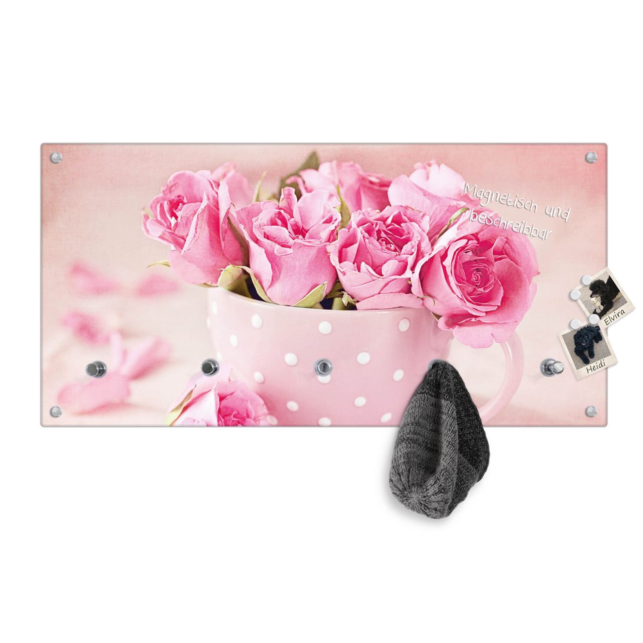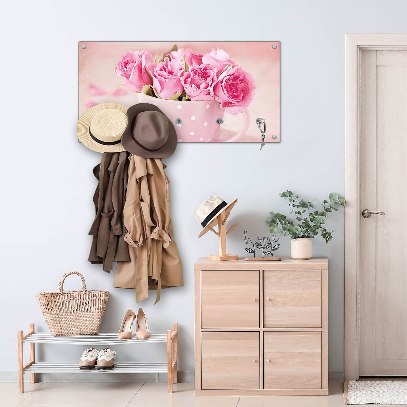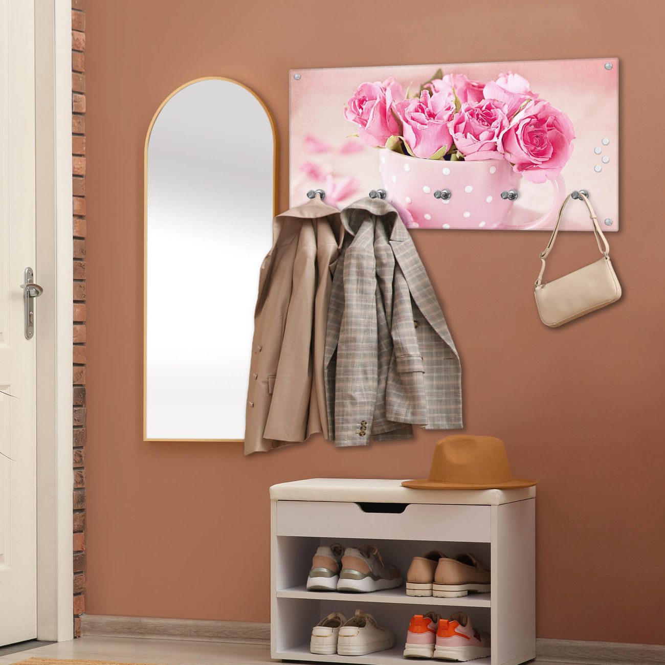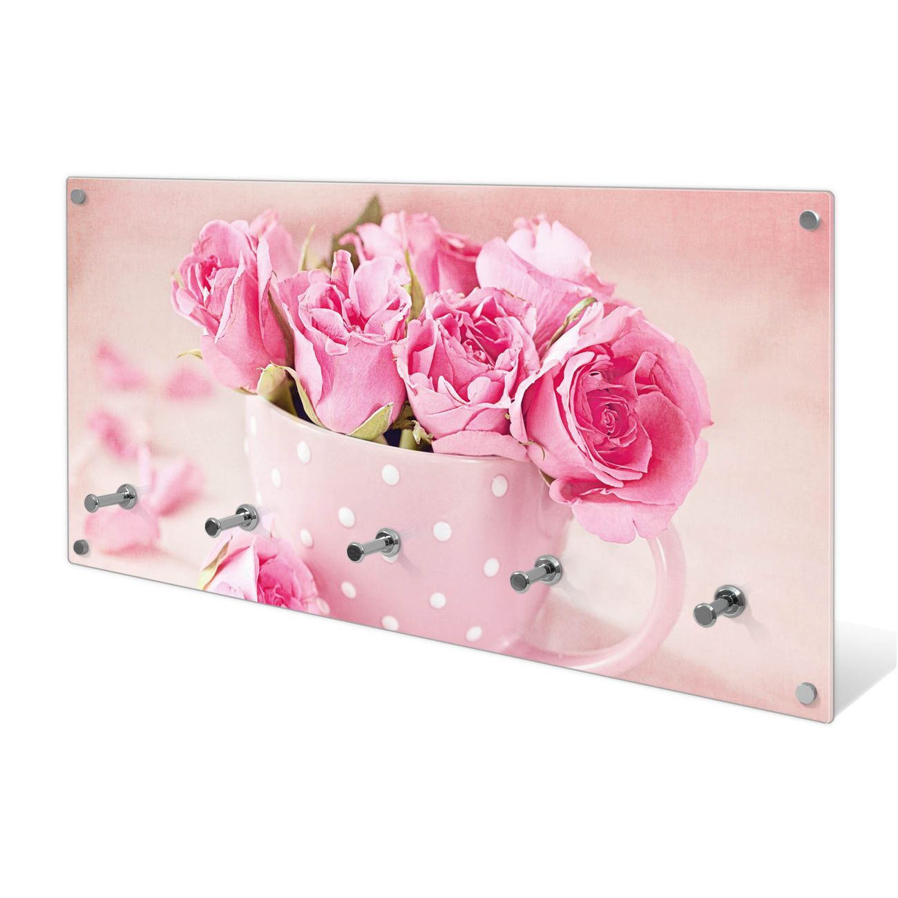 Wandgarderobe Glas 80x40cm Motiv Tasse Voll Rosen