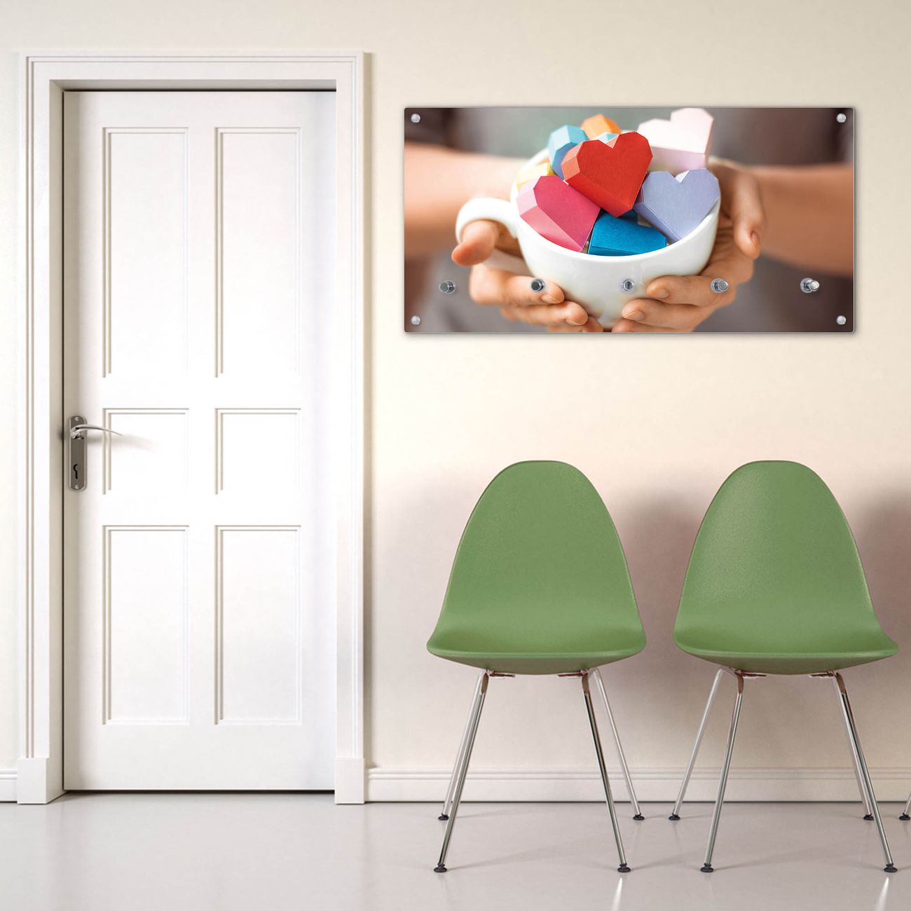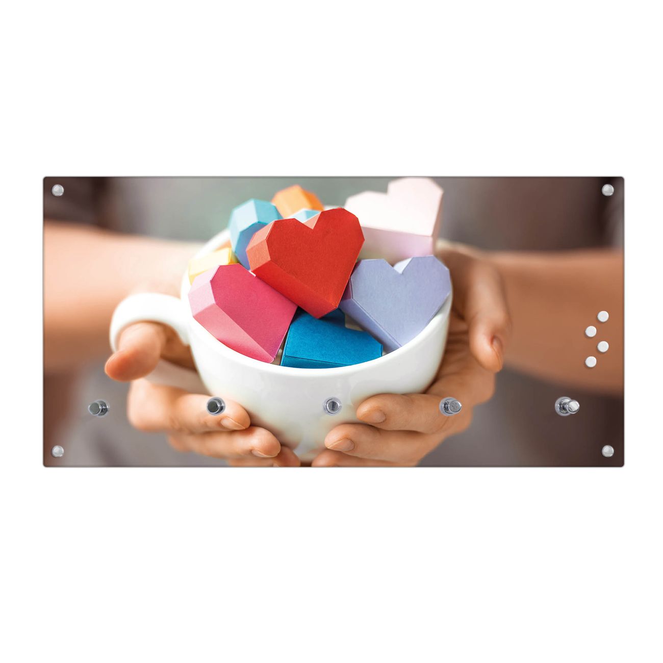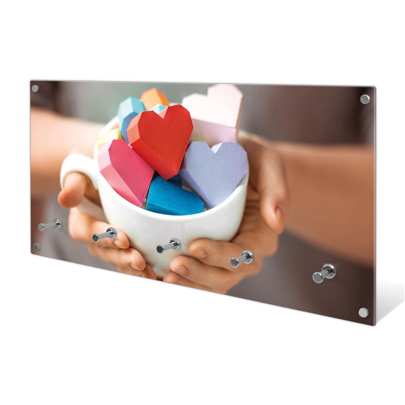 Wandgarderobe Glas 80x40cm Motiv Tasse voller Herzen