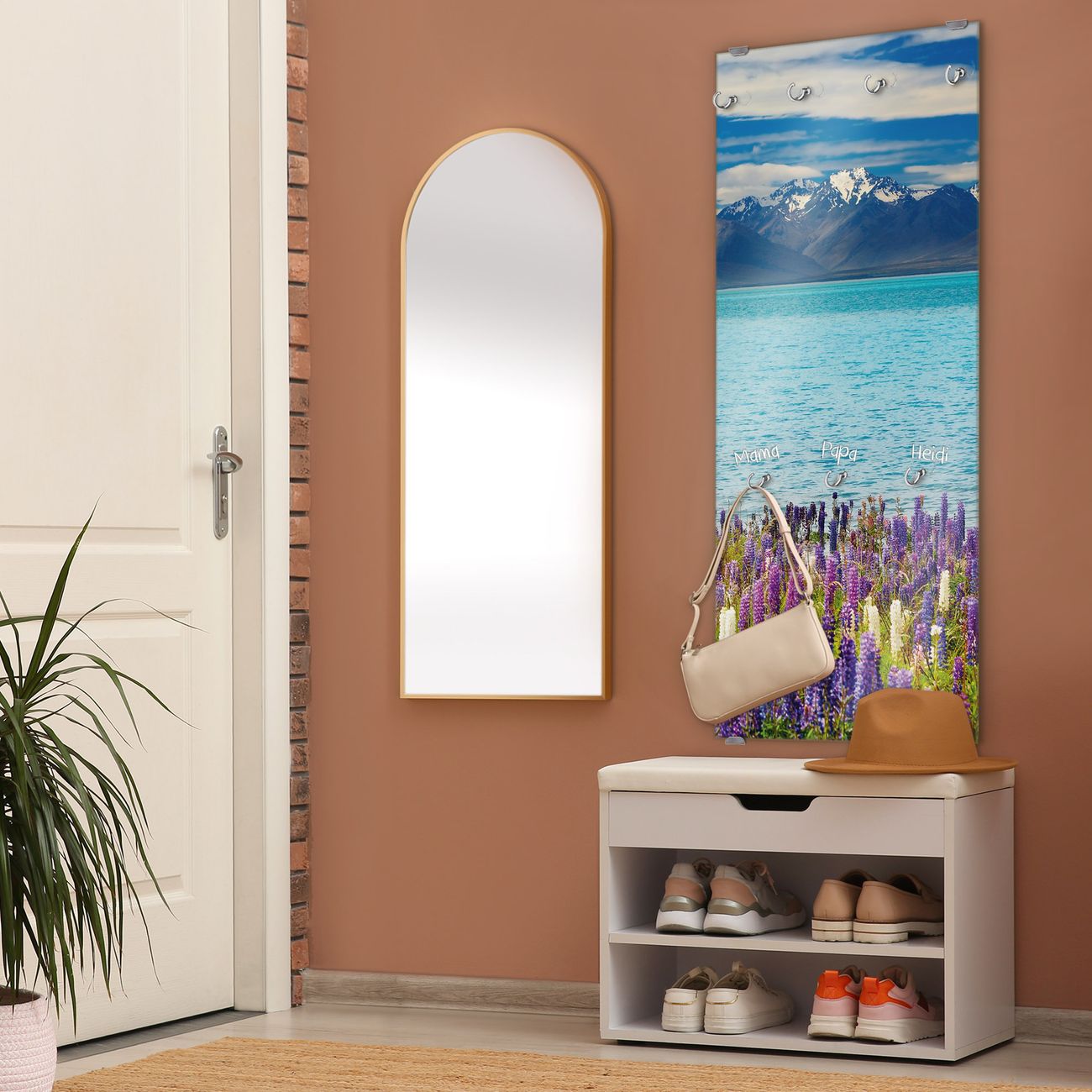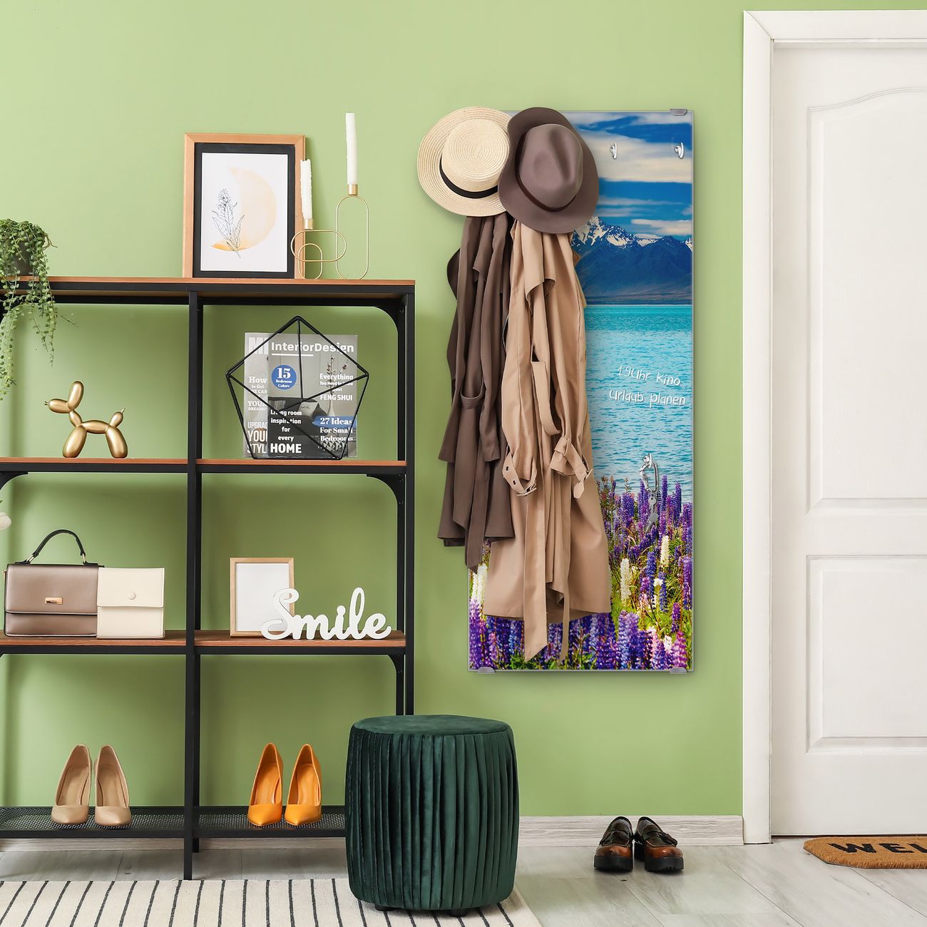 FUNKTION: Die banjado Wandgarderobe mit Motiv Tekapo See ist Ihr täglicher Begleiter. Zuverlässig hängen hier Ihre Jacken und Mäntel griffbereit. Das Echtglas ist Ihr Paneel auch beschreibbar und wieder abwischbar. DESIGN: Sie erhalten eine Garderobenleiste aus elegantem Echtglas mit dem Farbbrillanten Motiv Tekapo See hinterklebt. Das Design ist zeitlos klassisch, ohne dabei auf Funktionalität zu verzichten. Suchen Sie aus einer Vielzahl von Motiven das für Ihre Einrichtung Passende aus. DETAILS: Die Flurgarderobe besteht aus 4mm gehärtetem Sicherheitsglas. Sie ist 50cm breit, 125cm hoch und 6cm tief. Die Garderobenhaken zur Selbstmontage präsentieren sich in Edelstahl-Optik, ebenso die Abstandshalter für die Wandmontage. Ihre neue Garderobe ist sofort einsatzbereit. NUTZEN: Ihre neue Garderobe hält nicht nur zuverlässig Ihre Kleidung, sie ist auch optisch ein Blickfang. Durch das Glas können Sie an der Garderobe mit wasserlöslichen Kreidestiften oder Whiteboard-Markern auch Nachrichten hinterlassen. BANJADO: Wir sind ein kleines kreatives Team aus Sachsen und entwickeln Produkte die Design und Funktionalität verbinden sollen. Viel Freude mit Ihrer neuen Garderobe wünscht das banjado-Team!