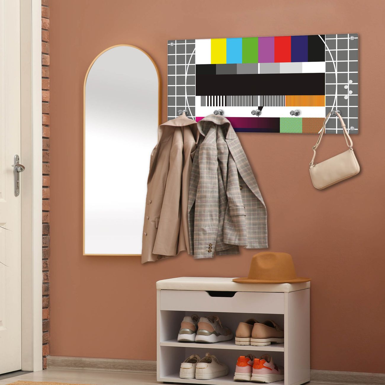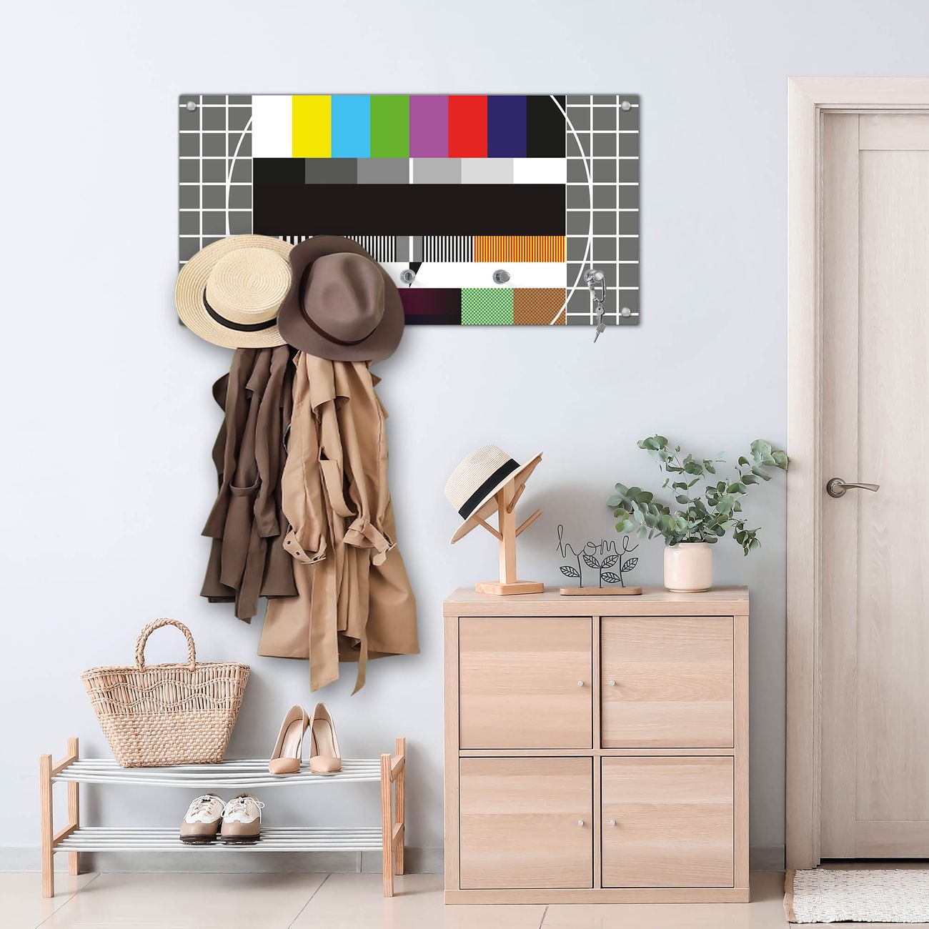 Wandgarderobe Glas 80x40cm Motiv Testbild