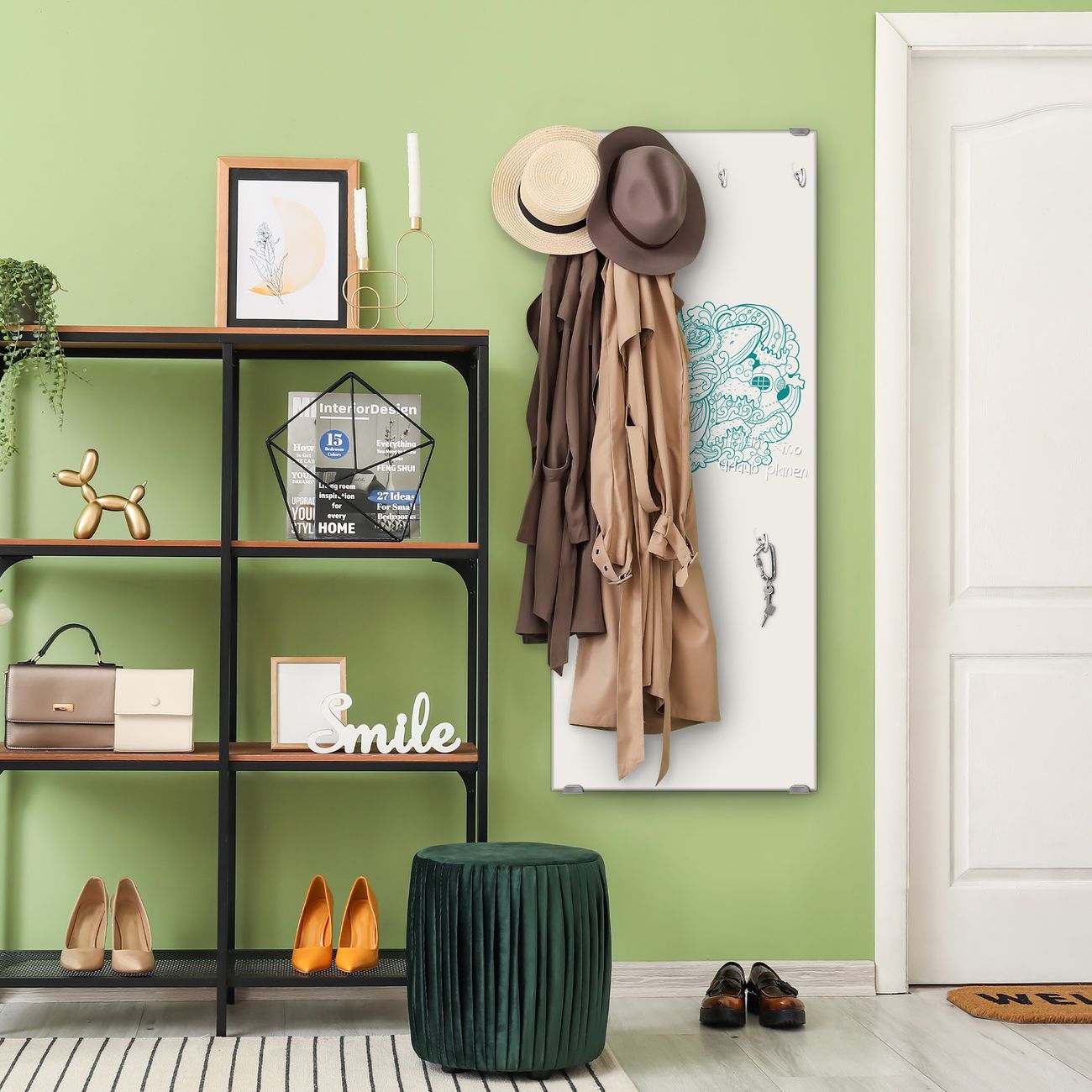 FUNKTION: Die banjado Wandgarderobe mit Motiv Tiefsee ist Ihr täglicher Begleiter. Zuverlässig hängen hier Ihre Jacken und Mäntel griffbereit. Das Echtglas ist Ihr Paneel auch beschreibbar und wieder abwischbar. DESIGN: Sie erhalten eine Garderobenleiste aus elegantem Echtglas mit dem Farbbrillanten Motiv Tiefsee hinterklebt. Das Design ist zeitlos klassisch, ohne dabei auf Funktionalität zu verzichten. Suchen Sie aus einer Vielzahl von Motiven das für Ihre Einrichtung Passende aus. DETAILS: Die Flurgarderobe besteht aus 4mm gehärtetem Sicherheitsglas. Sie ist 50cm breit, 125cm hoch und 6cm tief. Die Garderobenhaken zur Selbstmontage präsentieren sich in Edelstahl-Optik, ebenso die Abstandshalter für die Wandmontage. Ihre neue Garderobe ist sofort einsatzbereit. NUTZEN: Ihre neue Garderobe hält nicht nur zuverlässig Ihre Kleidung, sie ist auch optisch ein Blickfang. Durch das Glas können Sie an der Garderobe mit wasserlöslichen Kreidestiften oder Whiteboard-Markern auch Nachrichten hinterlassen. BANJADO: Wir sind ein kleines kreatives Team aus Sachsen und entwickeln Produkte die Design und Funktionalität verbinden sollen. Viel Freude mit Ihrer neuen Garderobe wünscht das banjado-Team!