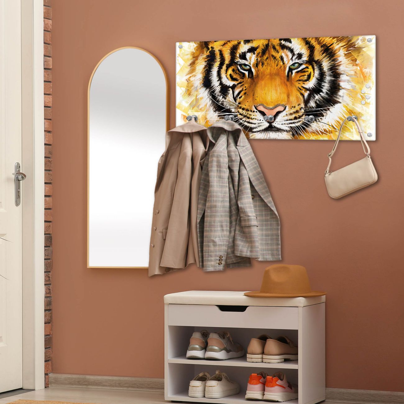 Wandgarderobe Glas 80x40cm Motiv Tigerkopf