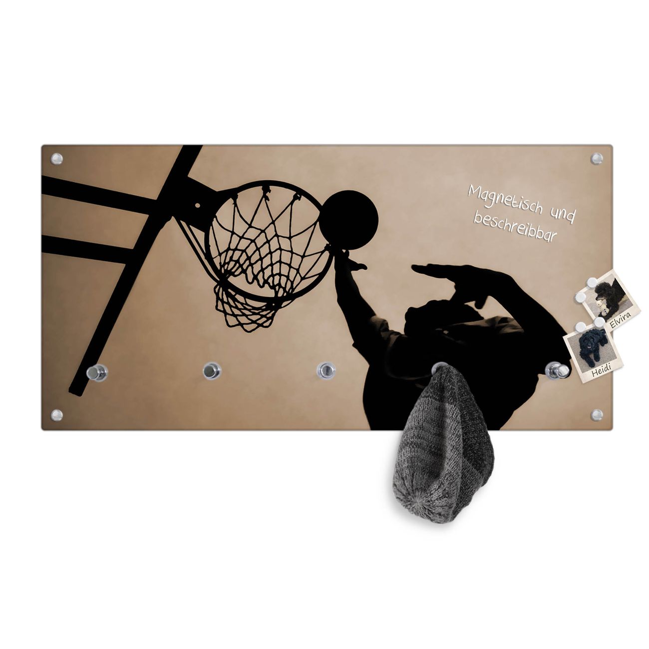 Bitte beachten Sie, dass an dieser Garderobe nur starke Neodym-Magnete halten! FUNKTION: Die banjado Wandgarderobe mit Motiv Tip In ist Ihr täglicher Begleiter. Zuverlässig hängen hier Ihre Jacken und Mäntel griffbereit. Gleichzeitig ist die Design Garderobe magnetisch, Sie können Notizen anheften und durch das Echtglas ist Ihr Paneel auch beschreibbar und wieder abwischbar. DESIGN: Sie erhalten eine Garderobenleiste aus elegantem Echtglas mit dem Farbbrillanten Motiv Tip In hinterklebt. Das Design ist zeitlos klassisch, ohne dabei auf Funktionalität zu verzichten. Suchen Sie aus einer Vielzahl von Motiven das für Ihre Einrichtung Passende aus. DETAILS: Die Flurgarderobe besteht aus 4mm gehärtetem Sicherheitsglas. Sie ist 80cm breit, 40cm hoch und 6cm tief. Die Garderobenhaken zur Selbstmontage präsentieren sich in Edelstahl-Optik, ebenso die Abstandshalter für die Wandmontage. Ihre neue Garderobe ist sofort einsatzbereit. NUTZEN: Ihre neue Garderobe hält nicht nur zuverlässig Ihre Kleidung, sie ist auch optisch ein Blickfang. Durch die magnetische Wirkung können Sie mit 4 beigefügten extrastarken Neodym-Magneten Notizen anheften und mit wasserlöslichen Kreidestiften oder Whiteboard-Markern auch Nachrichten hinterlassen. BANJADO: Wir sind ein kleines kreatives Team aus Sachsen und entwickeln Produkte die Design und Funktionalität verbinden sollen. Viel Freude mit Ihrer neuen Garderobe wünscht das banjado-Team!