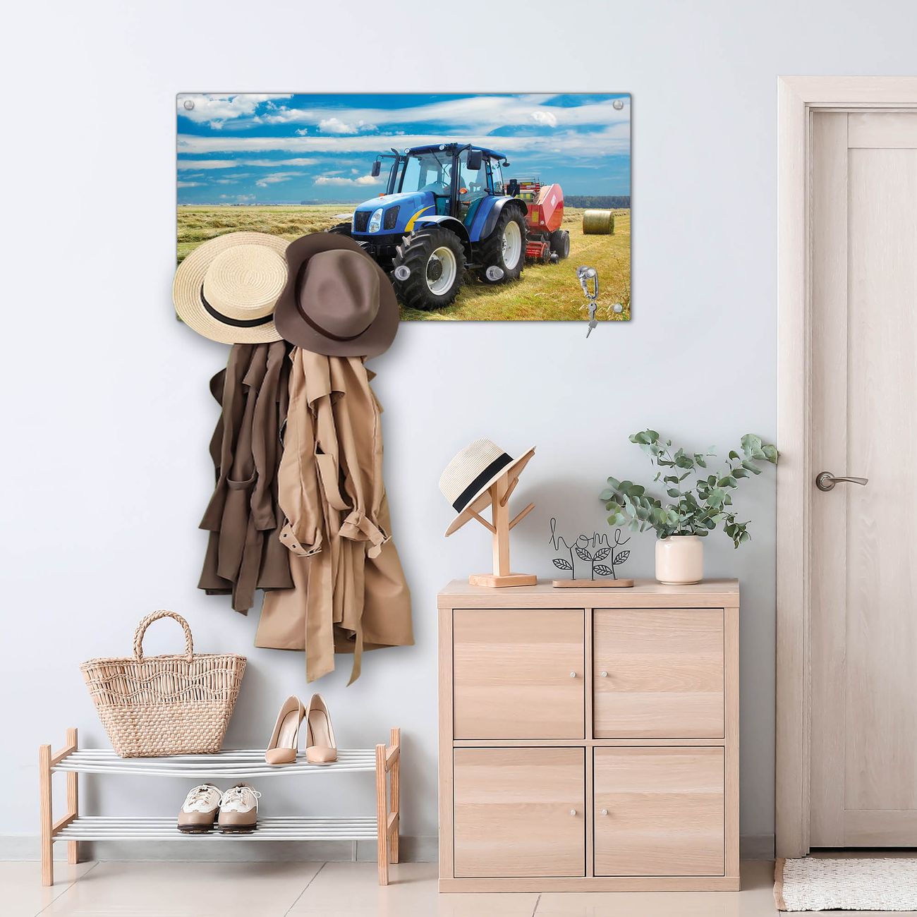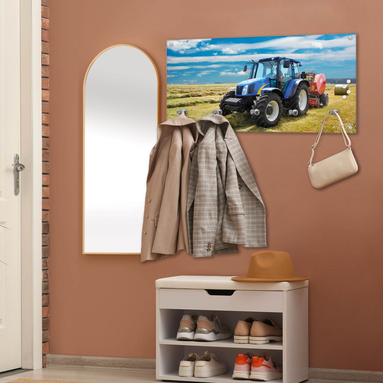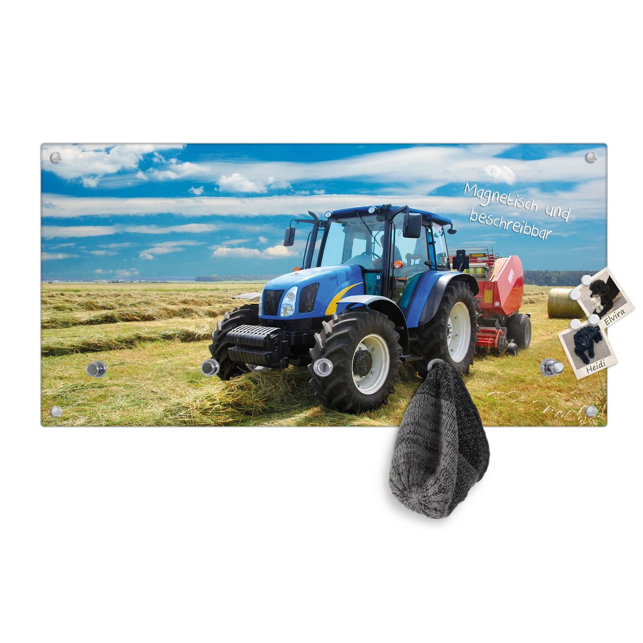 Wandgarderobe Glas 80x40cm Motiv Traktor
