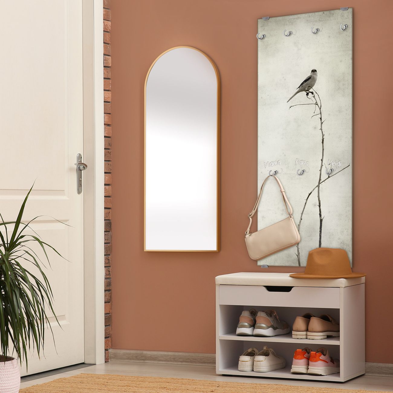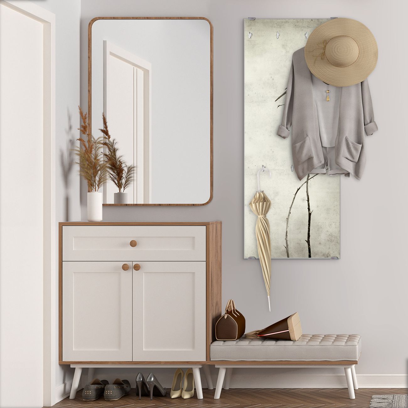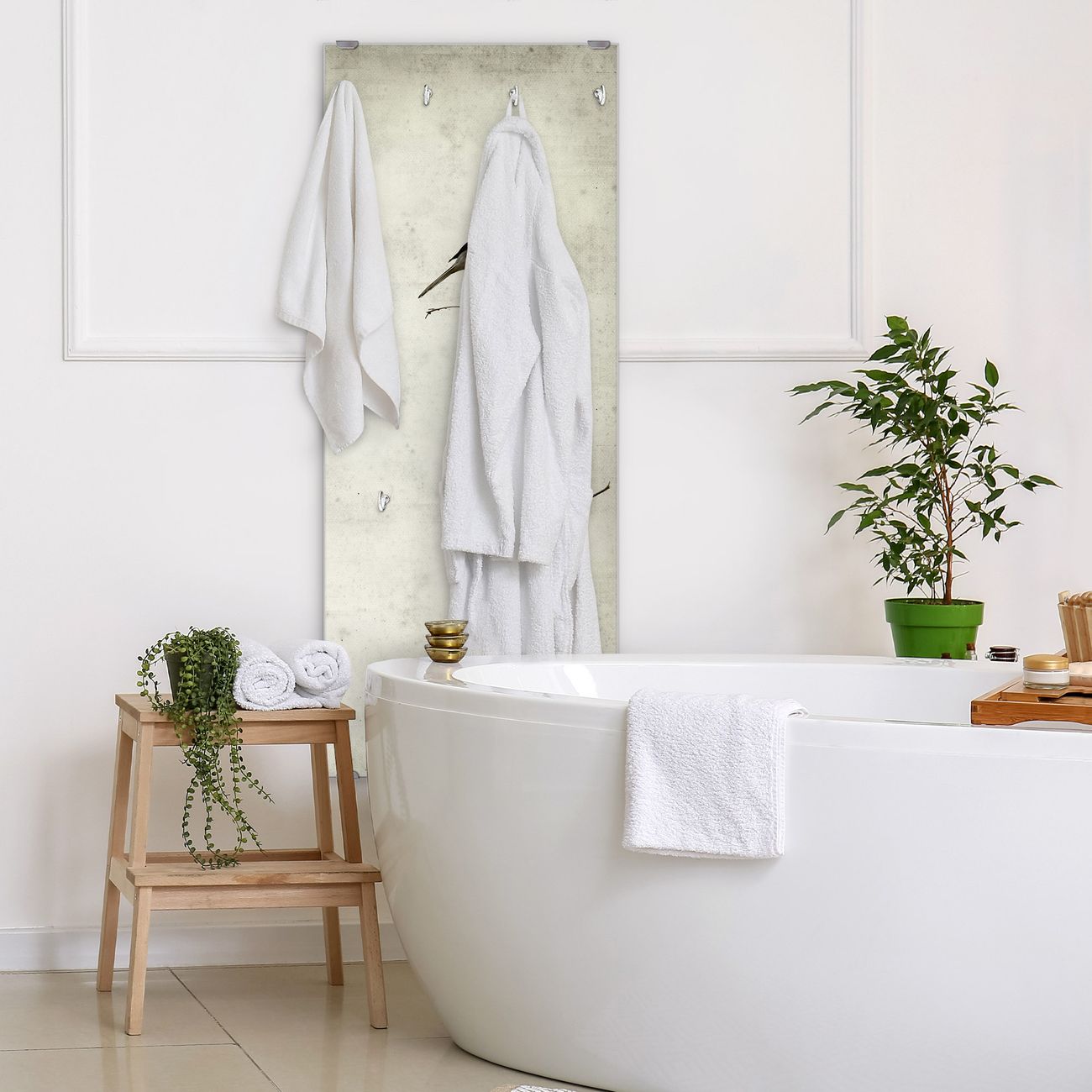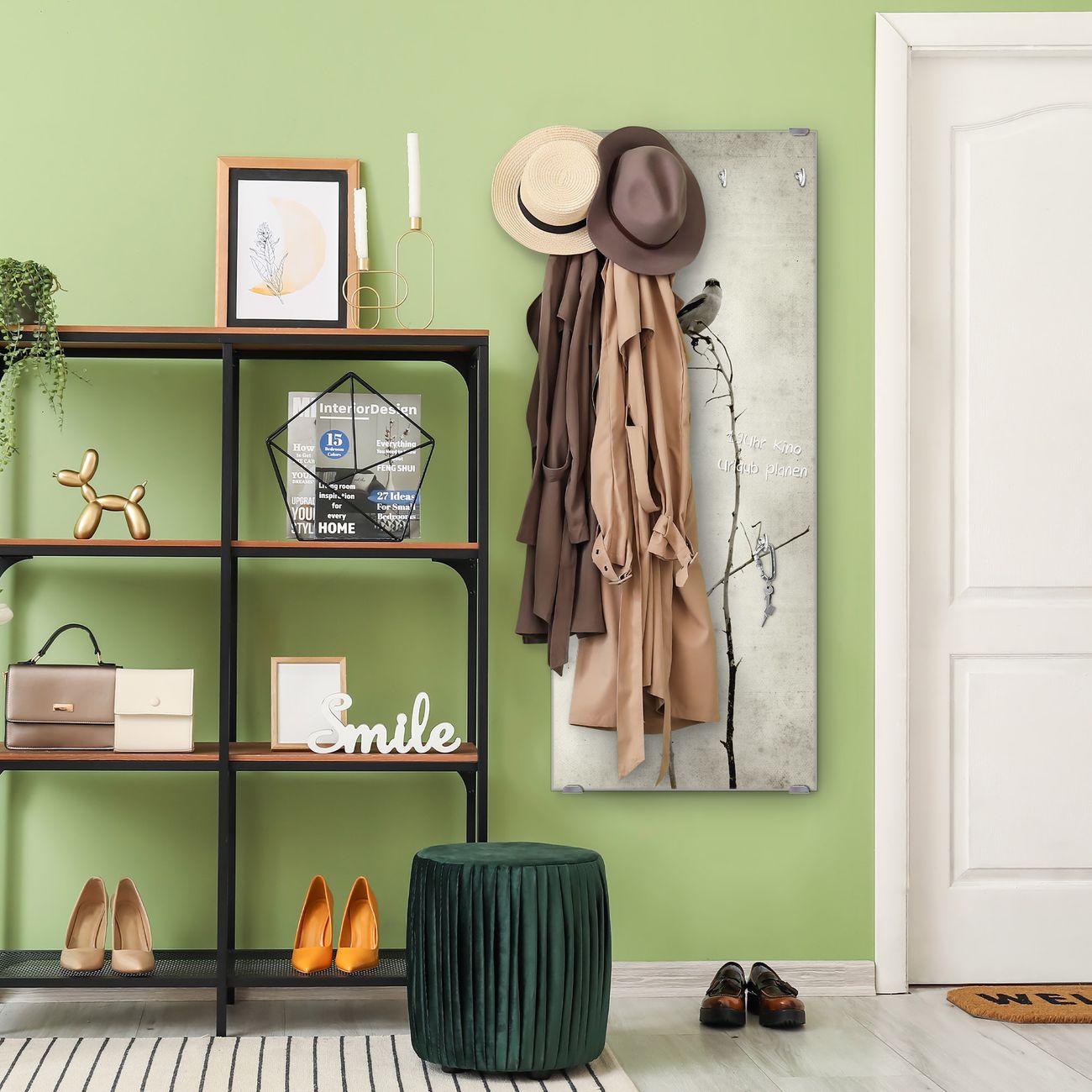 FUNKTION: Die banjado Wandgarderobe mit Motiv Tristessa ist Ihr täglicher Begleiter. Zuverlässig hängen hier Ihre Jacken und Mäntel griffbereit. Das Echtglas ist Ihr Paneel auch beschreibbar und wieder abwischbar. DESIGN: Sie erhalten eine Garderobenleiste aus elegantem Echtglas mit dem Farbbrillanten Motiv Tristessa hinterklebt. Das Design ist zeitlos klassisch, ohne dabei auf Funktionalität zu verzichten. Suchen Sie aus einer Vielzahl von Motiven das für Ihre Einrichtung Passende aus. DETAILS: Die Flurgarderobe besteht aus 4mm gehärtetem Sicherheitsglas. Sie ist 50cm breit, 125cm hoch und 6cm tief. Die Garderobenhaken zur Selbstmontage präsentieren sich in Edelstahl-Optik, ebenso die Abstandshalter für die Wandmontage. Ihre neue Garderobe ist sofort einsatzbereit. NUTZEN: Ihre neue Garderobe hält nicht nur zuverlässig Ihre Kleidung, sie ist auch optisch ein Blickfang. Durch das Glas können Sie an der Garderobe mit wasserlöslichen Kreidestiften oder Whiteboard-Markern auch Nachrichten hinterlassen. BANJADO: Wir sind ein kleines kreatives Team aus Sachsen und entwickeln Produkte die Design und Funktionalität verbinden sollen. Viel Freude mit Ihrer neuen Garderobe wünscht das banjado-Team!