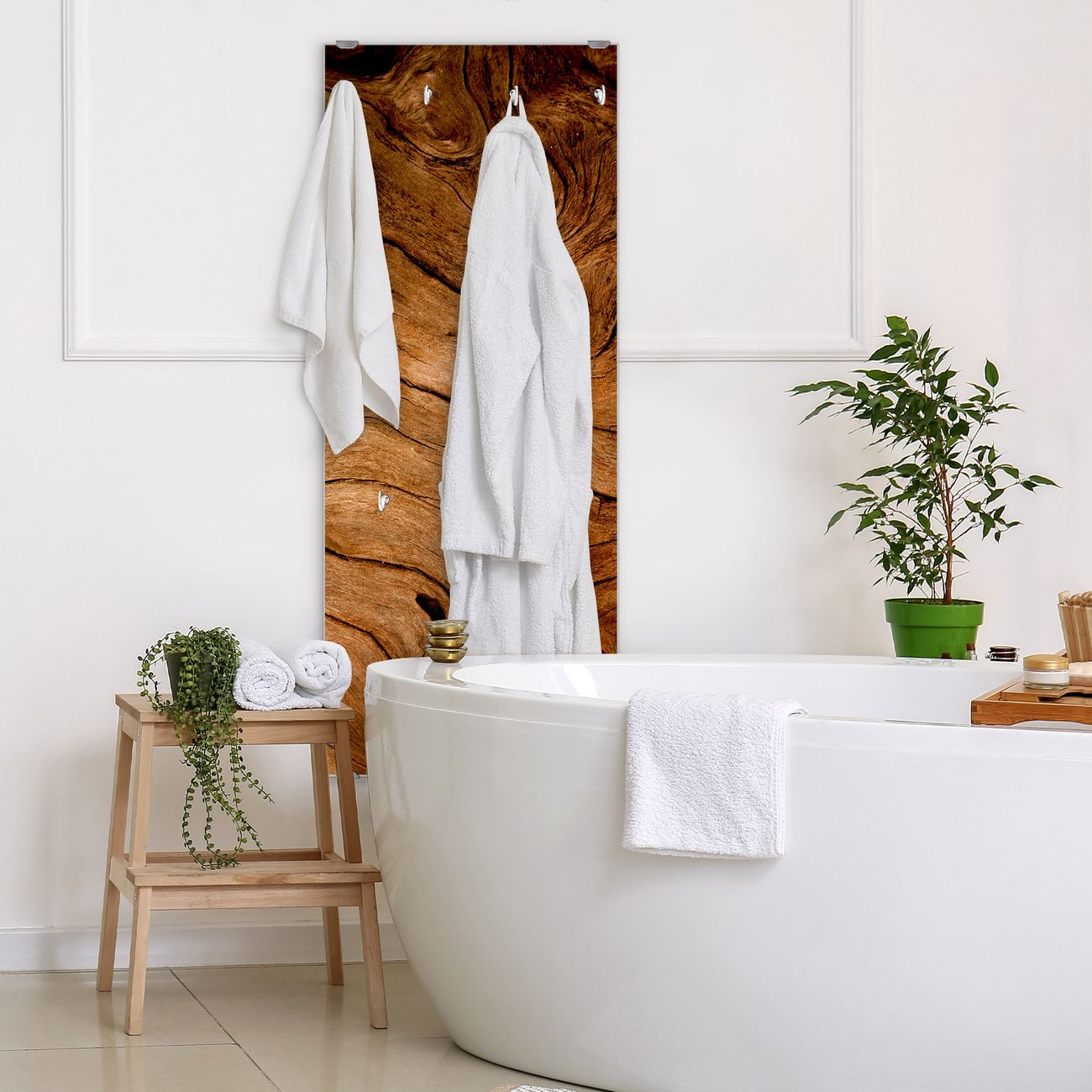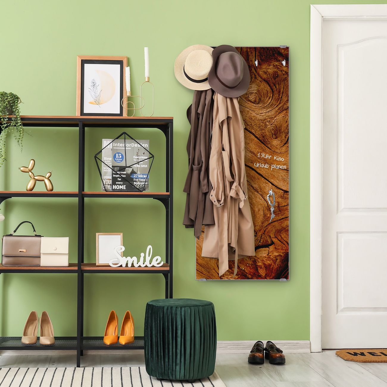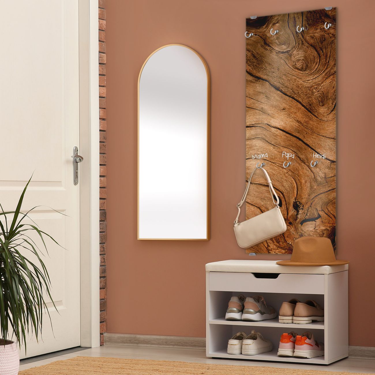 FUNKTION: Die banjado Wandgarderobe mit Motiv Trockenes Holz ist Ihr täglicher Begleiter. Zuverlässig hängen hier Ihre Jacken und Mäntel griffbereit. Das Echtglas ist Ihr Paneel auch beschreibbar und wieder abwischbar. DESIGN: Sie erhalten eine Garderobenleiste aus elegantem Echtglas mit dem Farbbrillanten Motiv Trockenes Holz hinterklebt. Das Design ist zeitlos klassisch, ohne dabei auf Funktionalität zu verzichten. Suchen Sie aus einer Vielzahl von Motiven das für Ihre Einrichtung Passende aus. DETAILS: Die Flurgarderobe besteht aus 4mm gehärtetem Sicherheitsglas. Sie ist 50cm breit, 125cm hoch und 6cm tief. Die Garderobenhaken zur Selbstmontage präsentieren sich in Edelstahl-Optik, ebenso die Abstandshalter für die Wandmontage. Ihre neue Garderobe ist sofort einsatzbereit. NUTZEN: Ihre neue Garderobe hält nicht nur zuverlässig Ihre Kleidung, sie ist auch optisch ein Blickfang. Durch das Glas können Sie an der Garderobe mit wasserlöslichen Kreidestiften oder Whiteboard-Markern auch Nachrichten hinterlassen. BANJADO: Wir sind ein kleines kreatives Team aus Sachsen und entwickeln Produkte die Design und Funktionalität verbinden sollen. Viel Freude mit Ihrer neuen Garderobe wünscht das banjado-Team!
