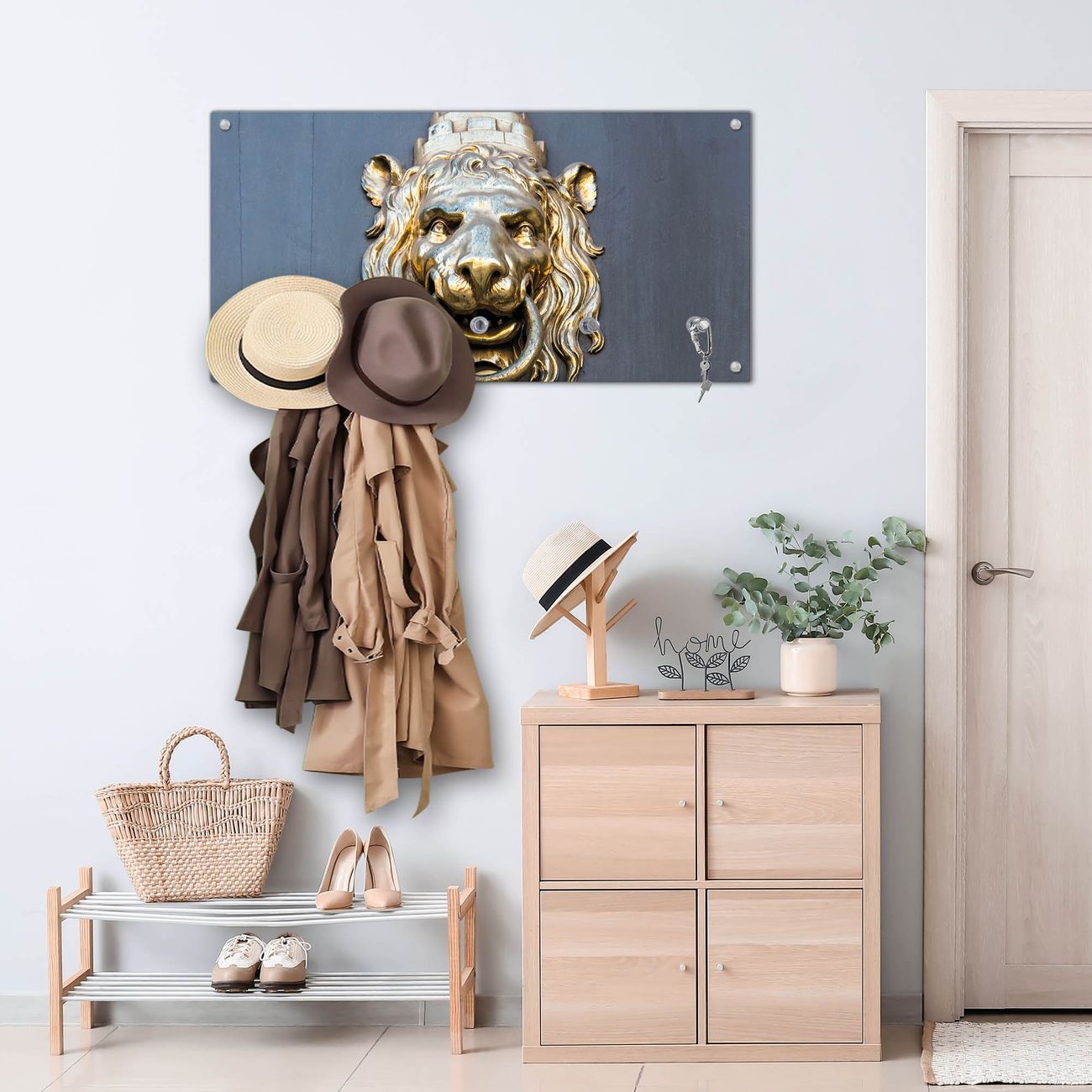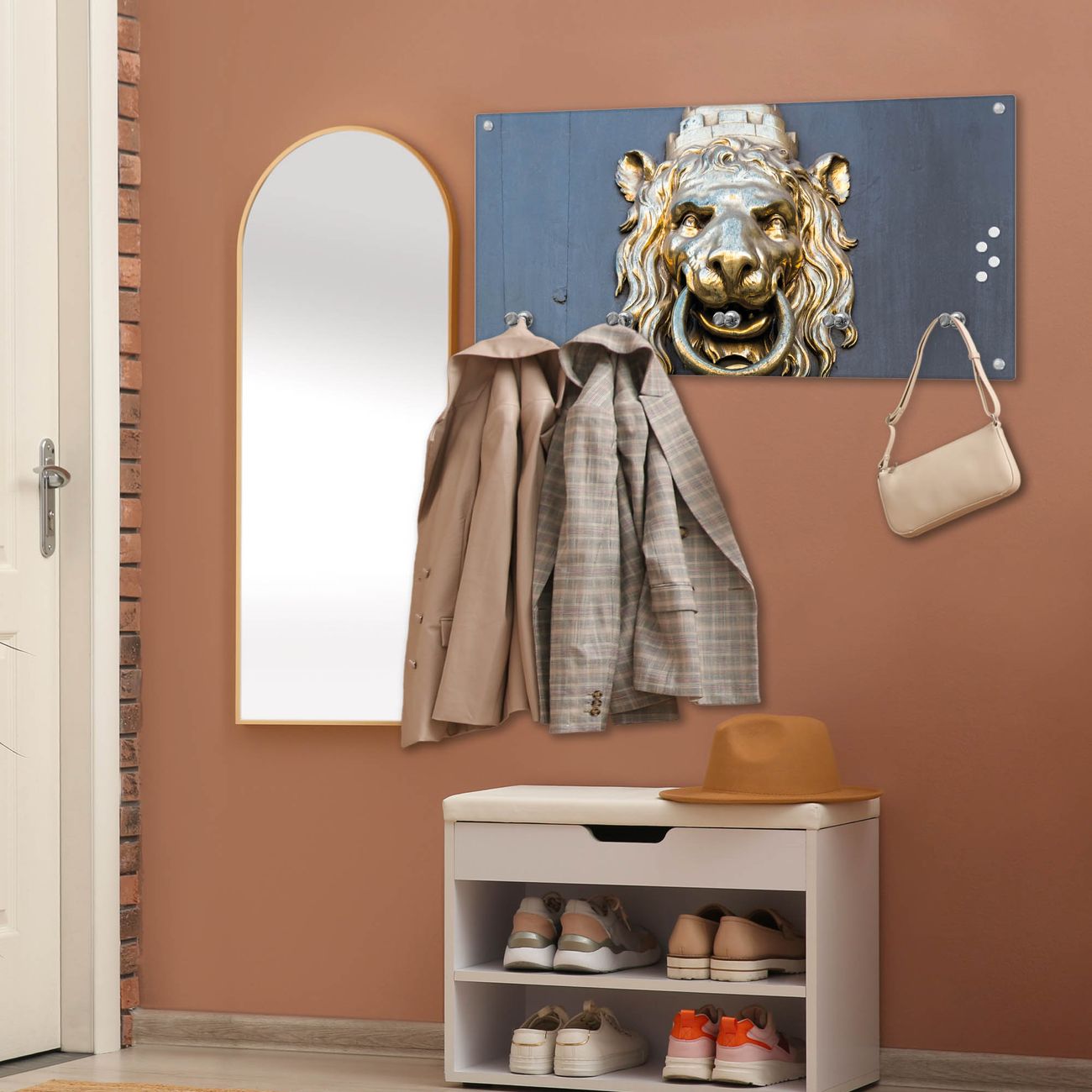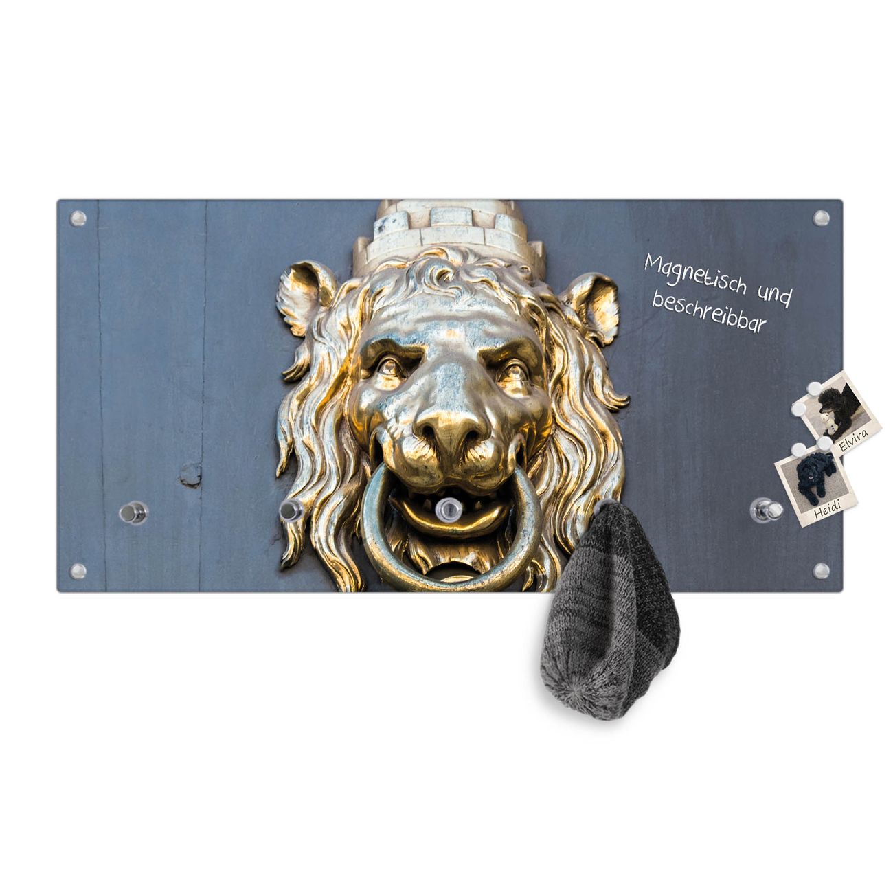 Wandgarderobe Glas 80x40cm Motiv Türklopfer Löwe