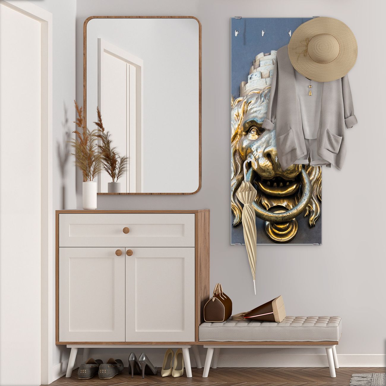 Flurgarderobe Glas 50x125cm Motiv Türklopfer Löwe