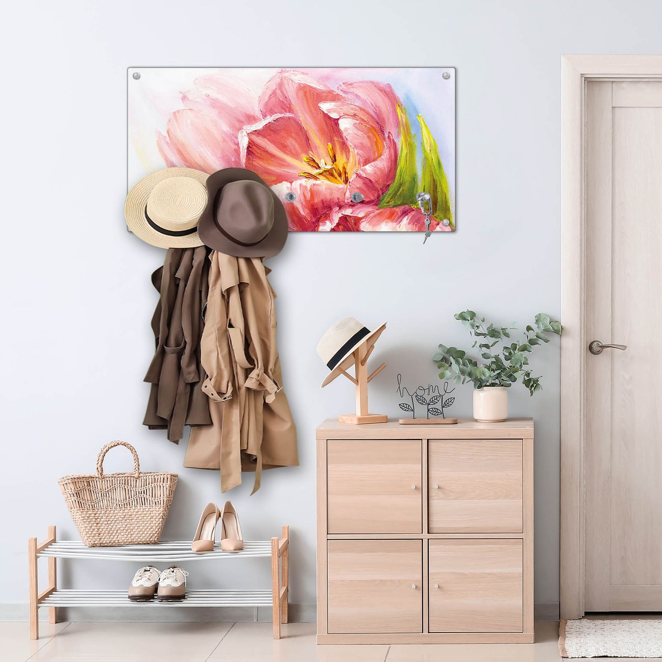 Wandgarderobe Glas 80x40cm Motiv Tulpen Detail