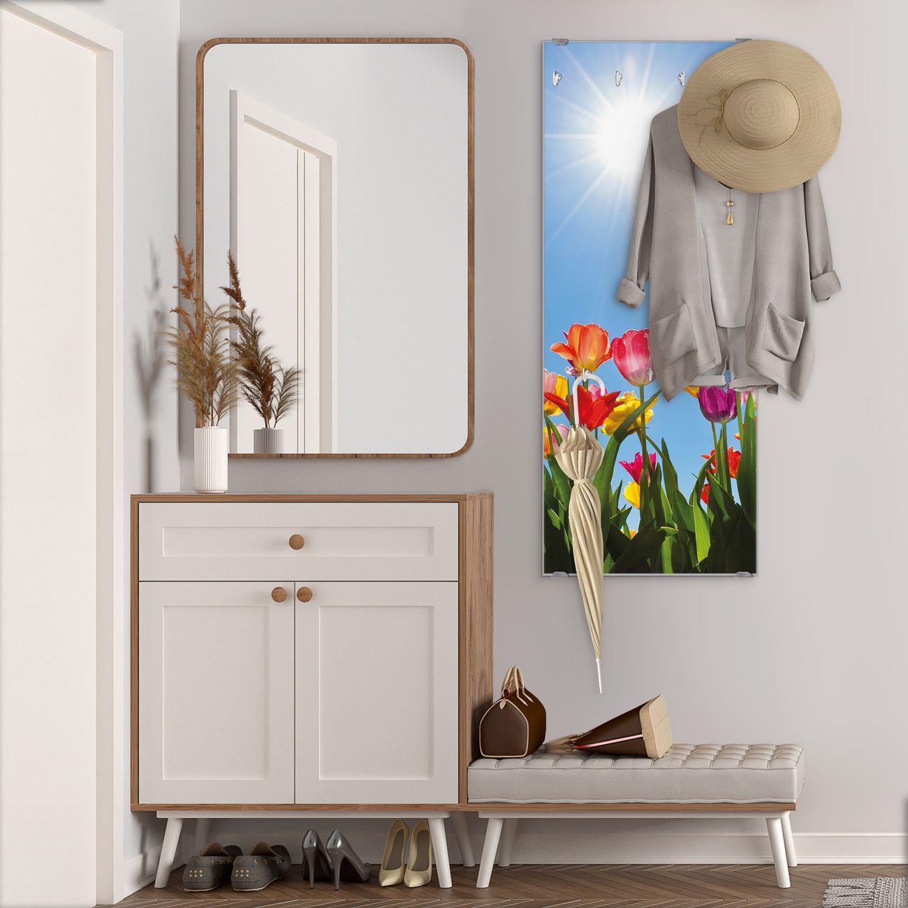 Flurgarderobe Glas 50x125cm Motiv Tulpenmeer