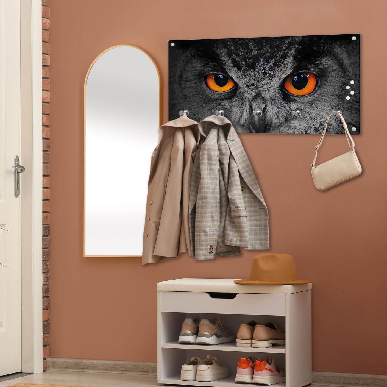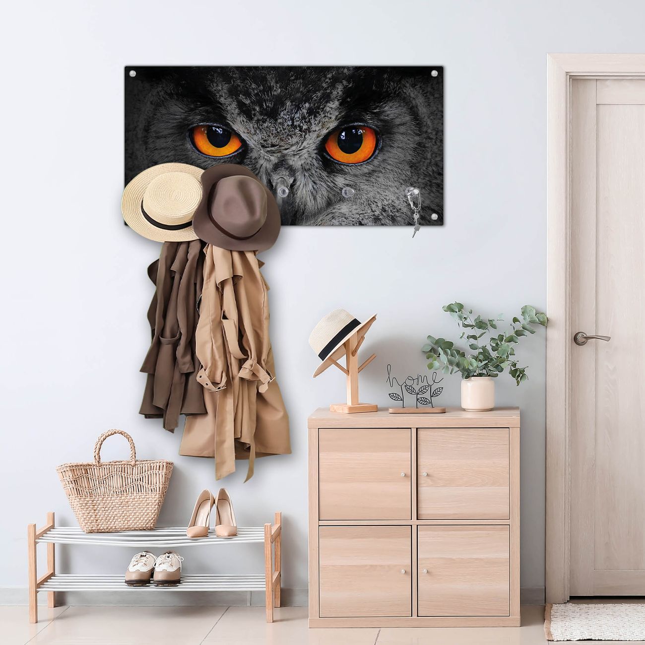 Wandgarderobe Glas 80x40cm Motiv Uhu