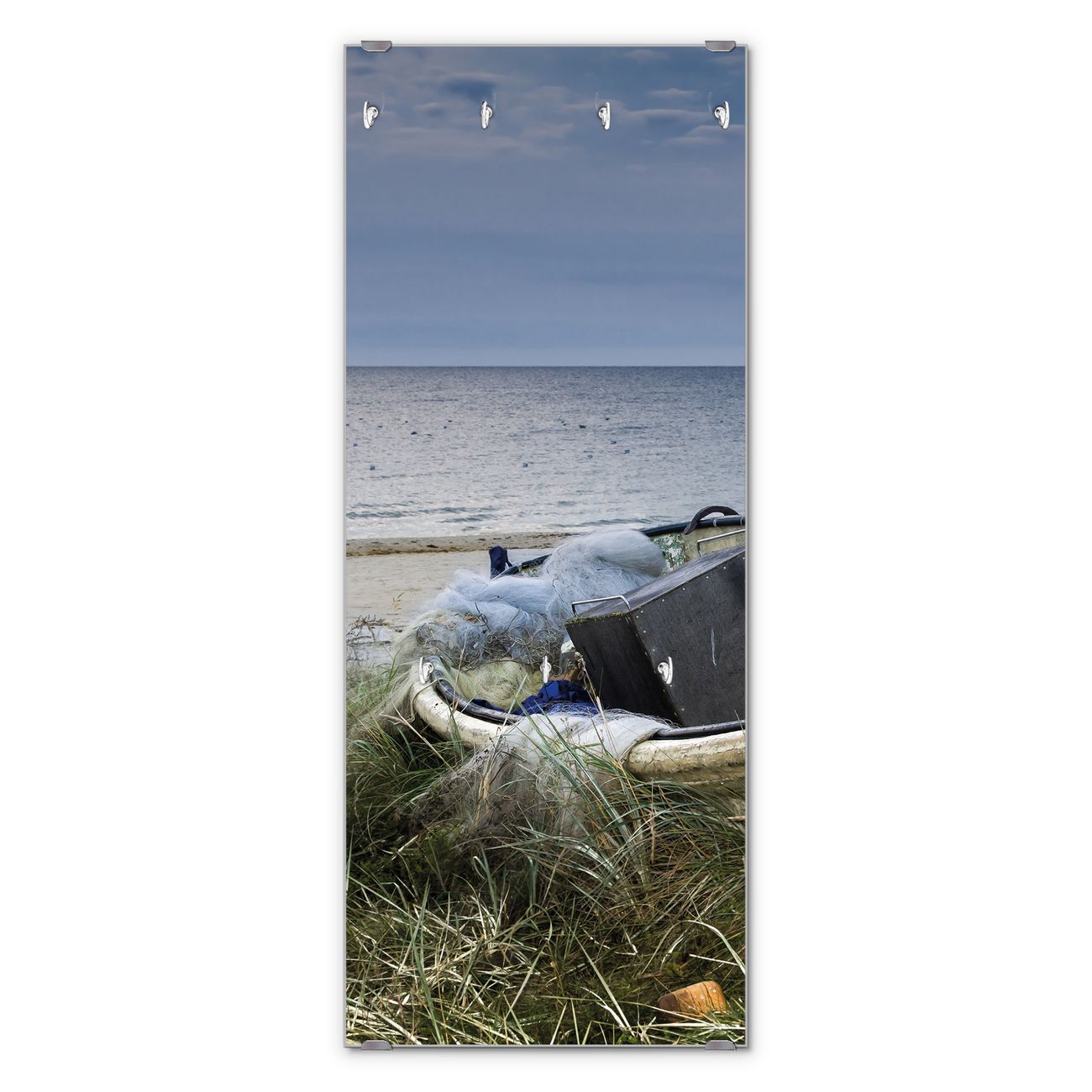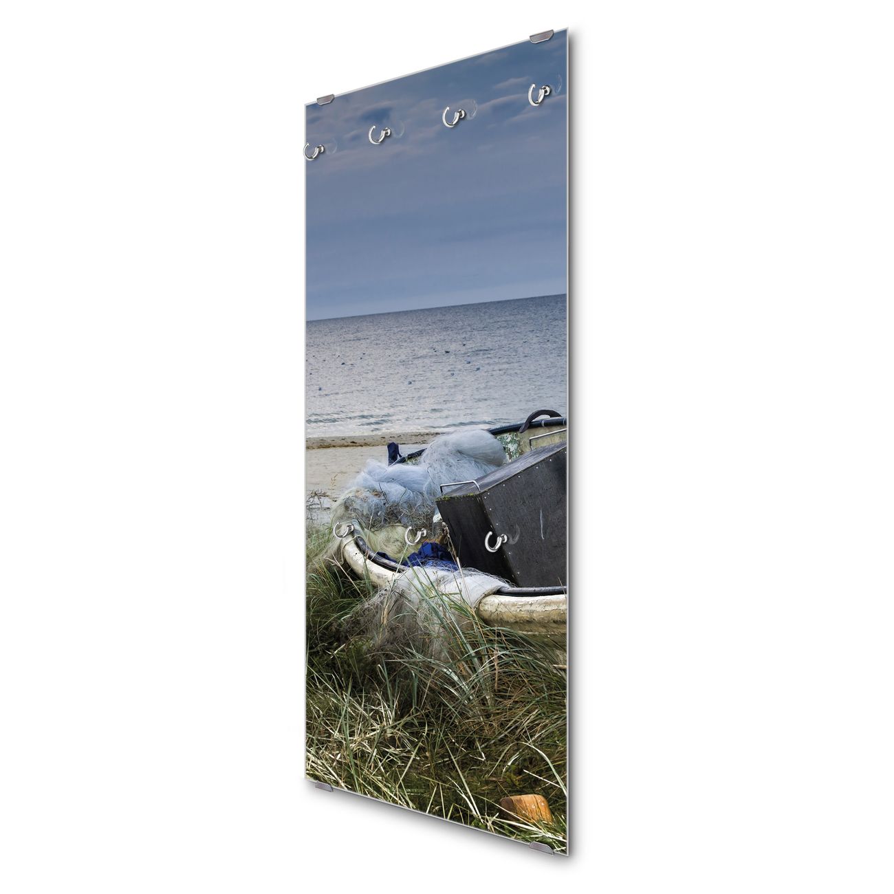 Flurgarderobe Glas 50x125cm Motiv Vergessenes Fischerboot