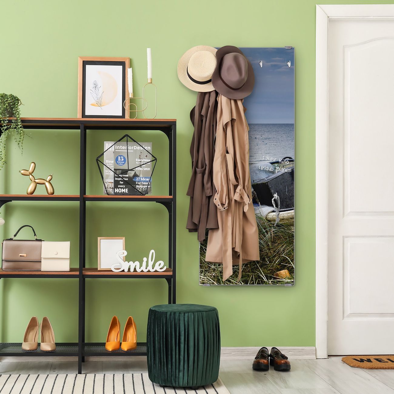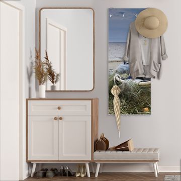 FUNKTION: Die banjado Wandgarderobe mit Motiv Vergessenes Fischerboot ist Ihr täglicher Begleiter. Zuverlässig hängen hier Ihre Jacken und Mäntel griffbereit. Das Echtglas ist Ihr Paneel auch beschreibbar und wieder abwischbar. DESIGN: Sie erhalten eine Garderobenleiste aus elegantem Echtglas mit dem Farbbrillanten Motiv Vergessenes Fischerboot hinterklebt. Das Design ist zeitlos klassisch, ohne dabei auf Funktionalität zu verzichten. Suchen Sie aus einer Vielzahl von Motiven das für Ihre Einrichtung Passende aus. DETAILS: Die Flurgarderobe besteht aus 4mm gehärtetem Sicherheitsglas. Sie ist 50cm breit, 125cm hoch und 6cm tief. Die Garderobenhaken zur Selbstmontage präsentieren sich in Edelstahl-Optik, ebenso die Abstandshalter für die Wandmontage. Ihre neue Garderobe ist sofort einsatzbereit. NUTZEN: Ihre neue Garderobe hält nicht nur zuverlässig Ihre Kleidung, sie ist auch optisch ein Blickfang. Durch das Glas können Sie an der Garderobe mit wasserlöslichen Kreidestiften oder Whiteboard-Markern auch Nachrichten hinterlassen. BANJADO: Wir sind ein kleines kreatives Team aus Sachsen und entwickeln Produkte die Design und Funktionalität verbinden sollen. Viel Freude mit Ihrer neuen Garderobe wünscht das banjado-Team!