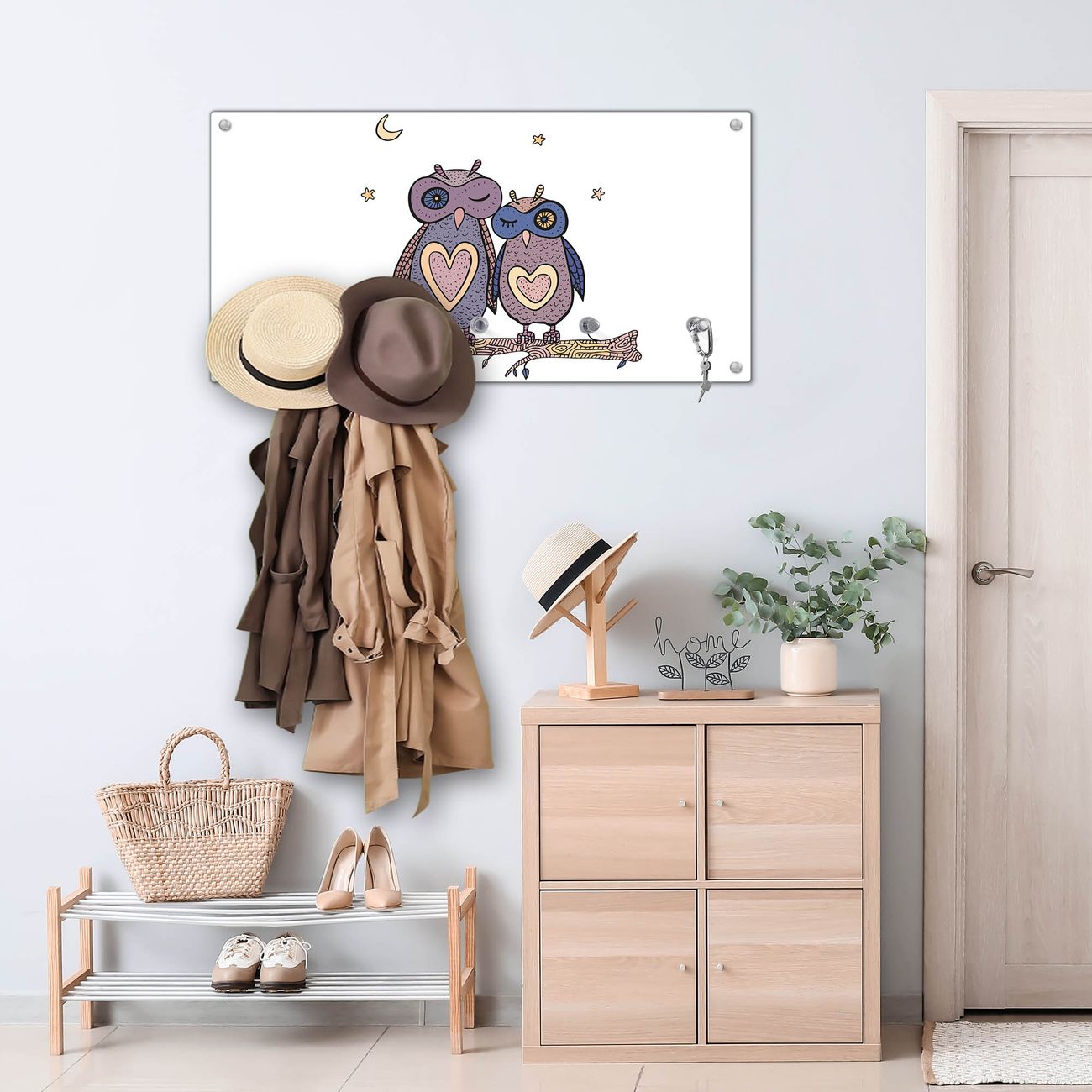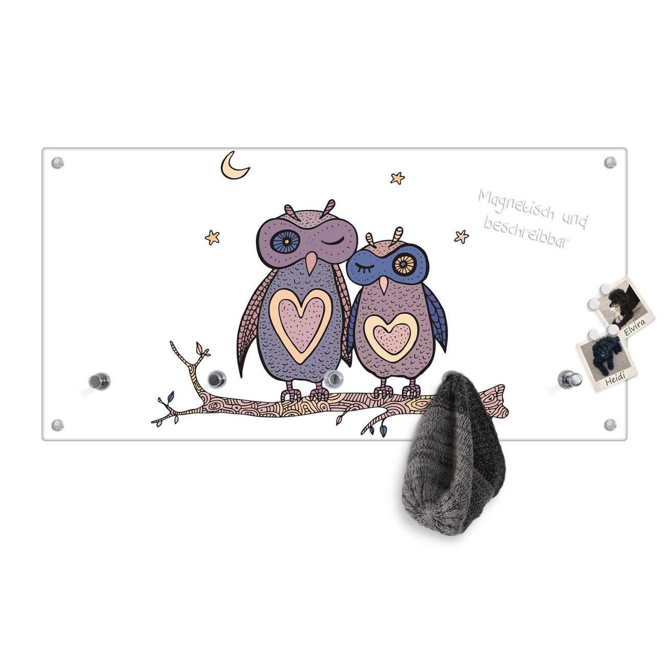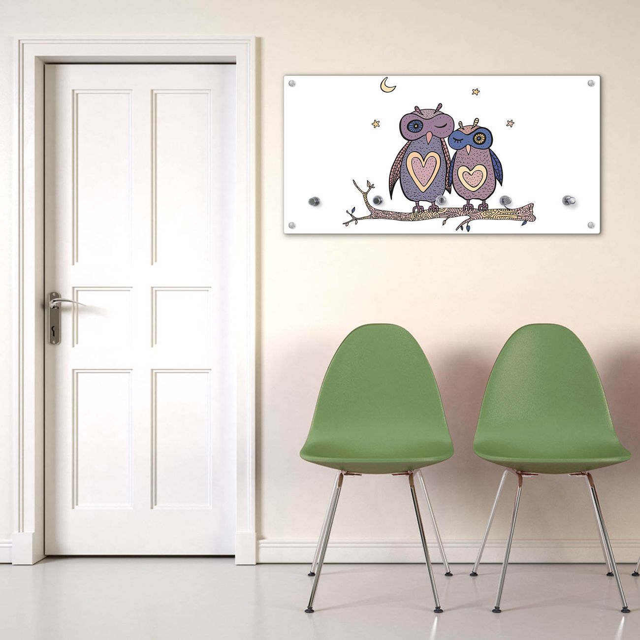 Wandgarderobe Glas 80x40cm Motiv Verliebte Eulen