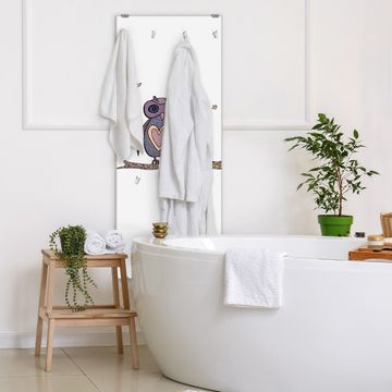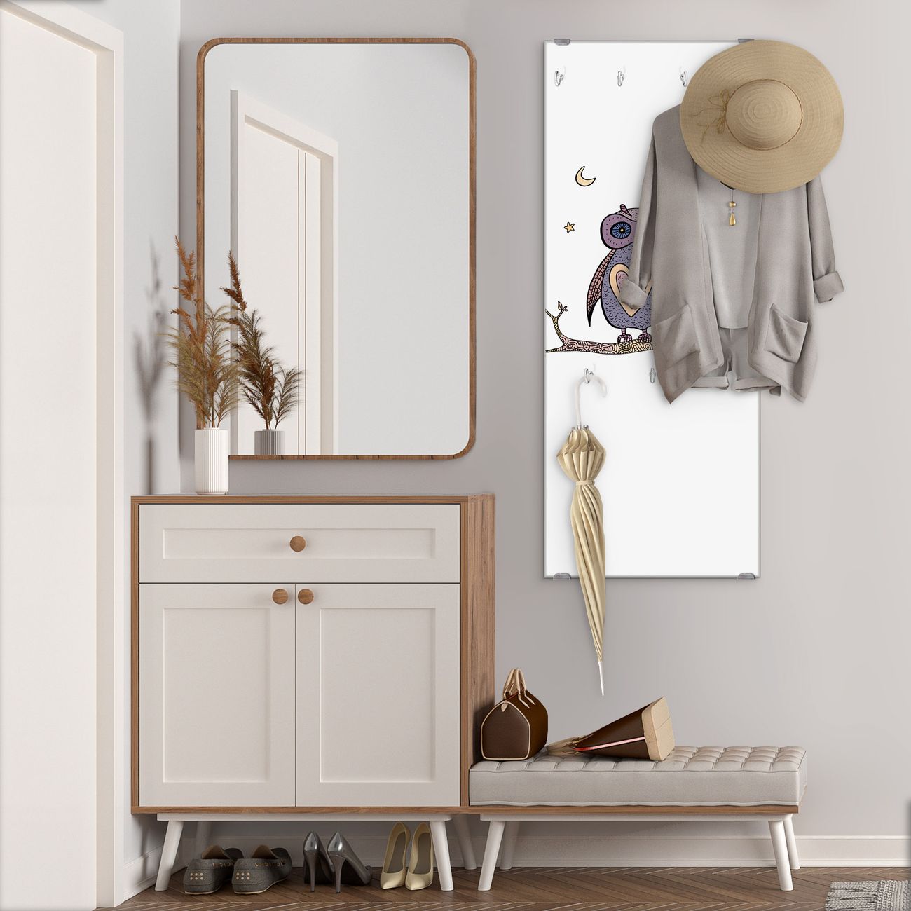 FUNKTION: Die banjado Wandgarderobe mit Motiv Verliebte Eulen ist Ihr täglicher Begleiter. Zuverlässig hängen hier Ihre Jacken und Mäntel griffbereit. Das Echtglas ist Ihr Paneel auch beschreibbar und wieder abwischbar. DESIGN: Sie erhalten eine Garderobenleiste aus elegantem Echtglas mit dem Farbbrillanten Motiv Verliebte Eulen hinterklebt. Das Design ist zeitlos klassisch, ohne dabei auf Funktionalität zu verzichten. Suchen Sie aus einer Vielzahl von Motiven das für Ihre Einrichtung Passende aus. DETAILS: Die Flurgarderobe besteht aus 4mm gehärtetem Sicherheitsglas. Sie ist 50cm breit, 125cm hoch und 6cm tief. Die Garderobenhaken zur Selbstmontage präsentieren sich in Edelstahl-Optik, ebenso die Abstandshalter für die Wandmontage. Ihre neue Garderobe ist sofort einsatzbereit. NUTZEN: Ihre neue Garderobe hält nicht nur zuverlässig Ihre Kleidung, sie ist auch optisch ein Blickfang. Durch das Glas können Sie an der Garderobe mit wasserlöslichen Kreidestiften oder Whiteboard-Markern auch Nachrichten hinterlassen. BANJADO: Wir sind ein kleines kreatives Team aus Sachsen und entwickeln Produkte die Design und Funktionalität verbinden sollen. Viel Freude mit Ihrer neuen Garderobe wünscht das banjado-Team!