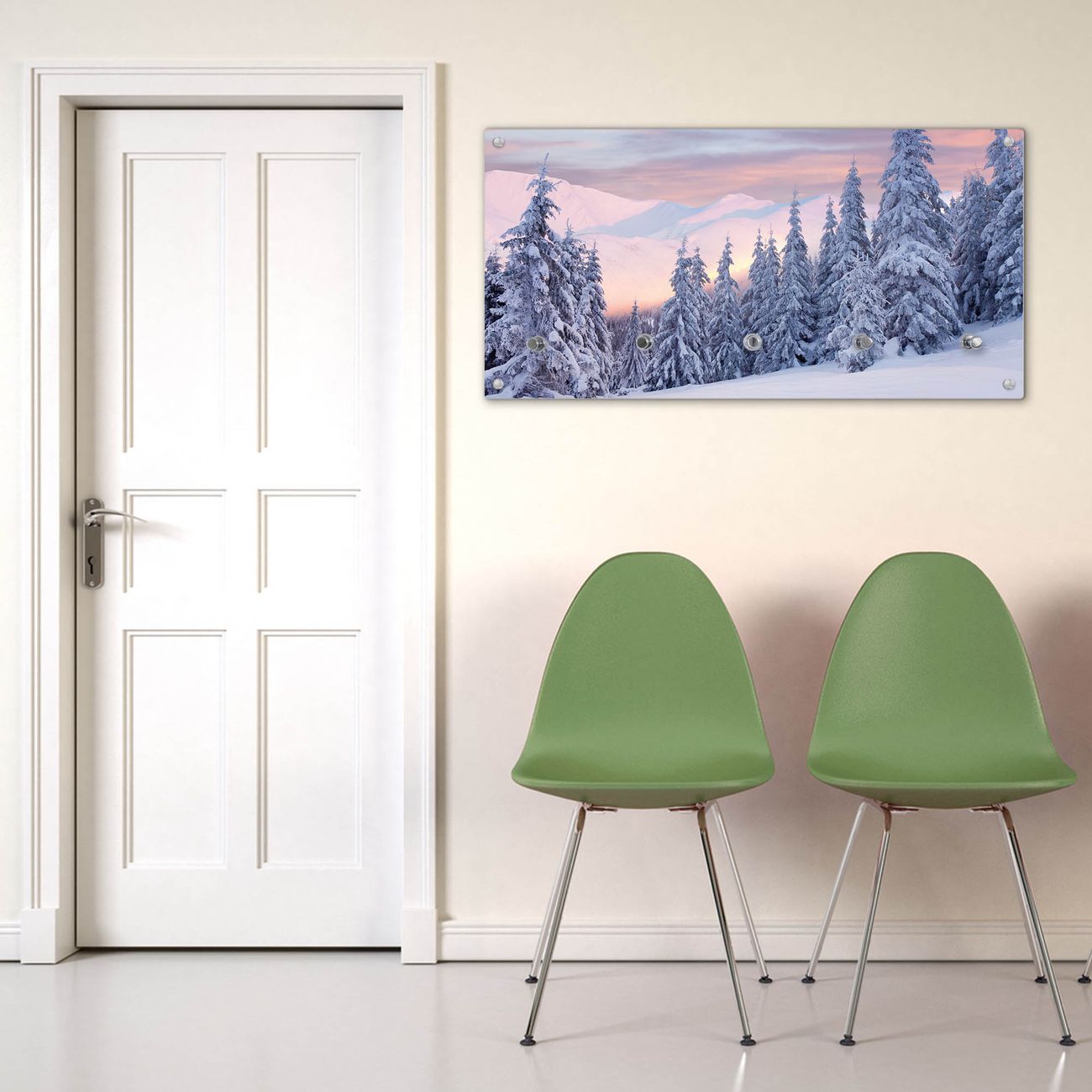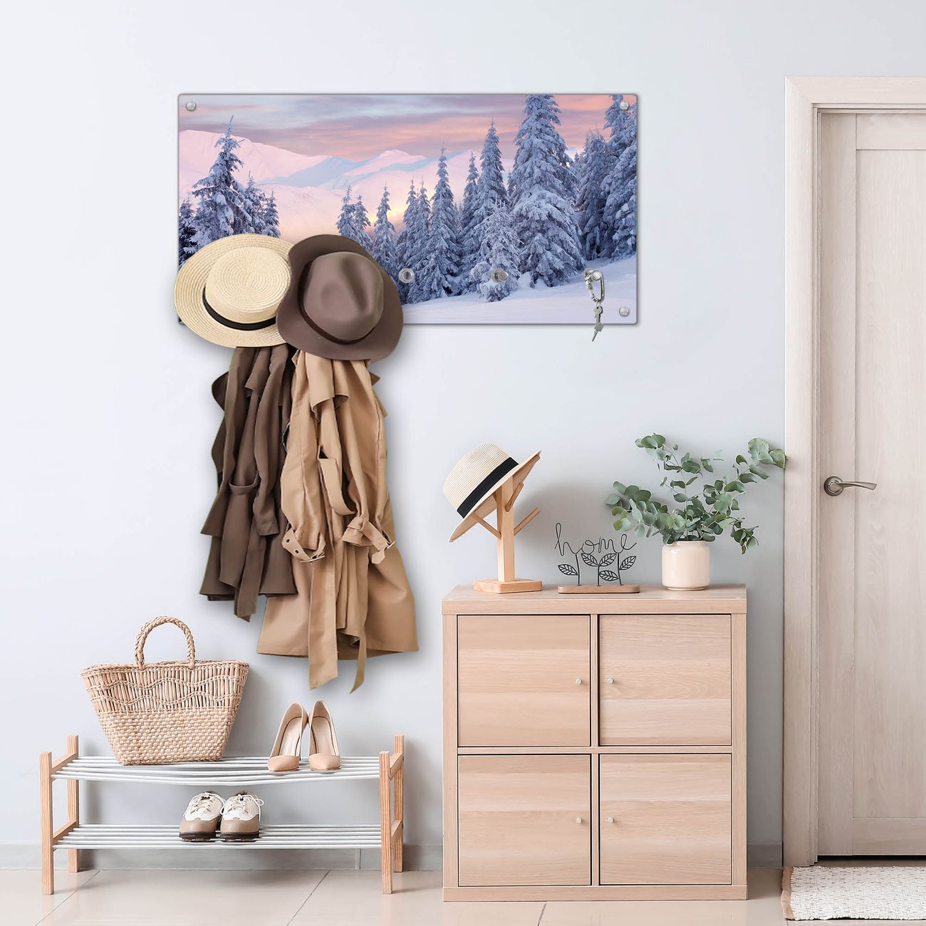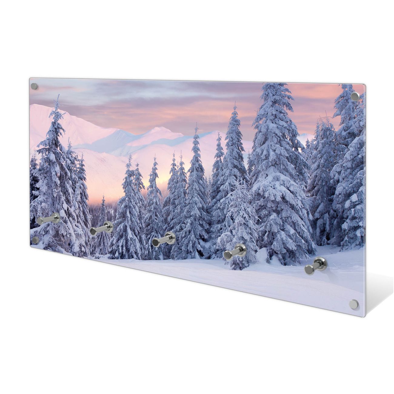 Wandgarderobe Glas 80x40cm Motiv Verschneite Berge