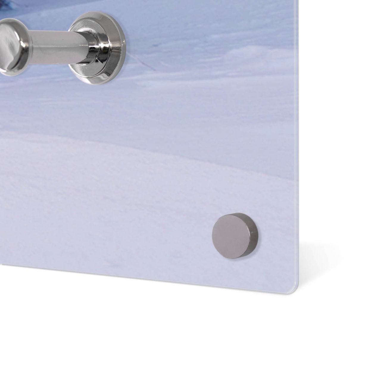 Bitte beachten Sie, dass an dieser Garderobe nur starke Neodym-Magnete halten! FUNKTION: Die banjado Wandgarderobe mit Motiv Verschneite Berge ist Ihr täglicher Begleiter. Zuverlässig hängen hier Ihre Jacken und Mäntel griffbereit. Gleichzeitig ist die Design Garderobe magnetisch, Sie können Notizen anheften und durch das Echtglas ist Ihr Paneel auch beschreibbar und wieder abwischbar. DESIGN: Sie erhalten eine Garderobenleiste aus elegantem Echtglas mit dem Farbbrillanten Motiv Verschneite Berge hinterklebt. Das Design ist zeitlos klassisch, ohne dabei auf Funktionalität zu verzichten. Suchen Sie aus einer Vielzahl von Motiven das für Ihre Einrichtung Passende aus. DETAILS: Die Flurgarderobe besteht aus 4mm gehärtetem Sicherheitsglas. Sie ist 80cm breit, 40cm hoch und 6cm tief. Die Garderobenhaken zur Selbstmontage präsentieren sich in Edelstahl-Optik, ebenso die Abstandshalter für die Wandmontage. Ihre neue Garderobe ist sofort einsatzbereit. NUTZEN: Ihre neue Garderobe hält nicht nur zuverlässig Ihre Kleidung, sie ist auch optisch ein Blickfang. Durch die magnetische Wirkung können Sie mit 4 beigefügten extrastarken Neodym-Magneten Notizen anheften und mit wasserlöslichen Kreidestiften oder Whiteboard-Markern auch Nachrichten hinterlassen. BANJADO: Wir sind ein kleines kreatives Team aus Sachsen und entwickeln Produkte die Design und Funktionalität verbinden sollen. Viel Freude mit Ihrer neuen Garderobe wünscht das banjado-Team!