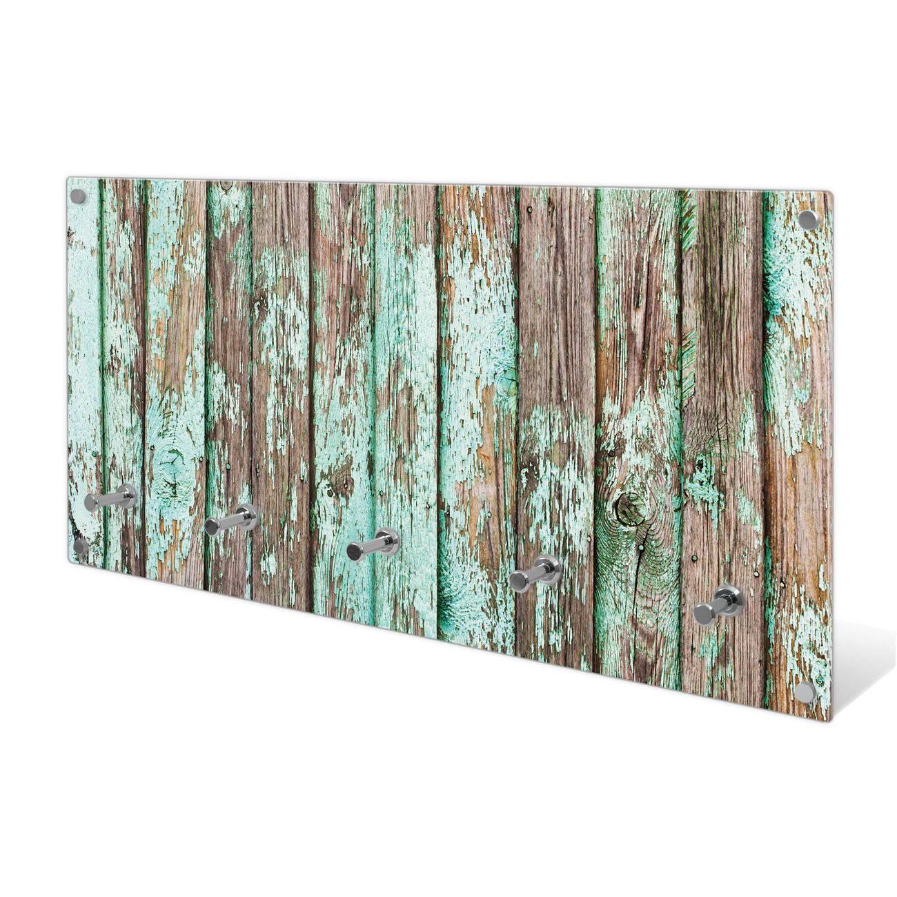 Wandgarderobe Glas 80x40cm Motiv Verwittertes Holz