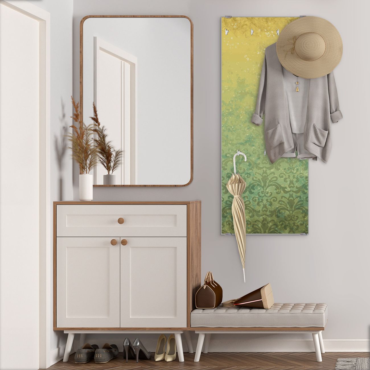 Flurgarderobe Glas 50x125cm Motiv Vintage Messing