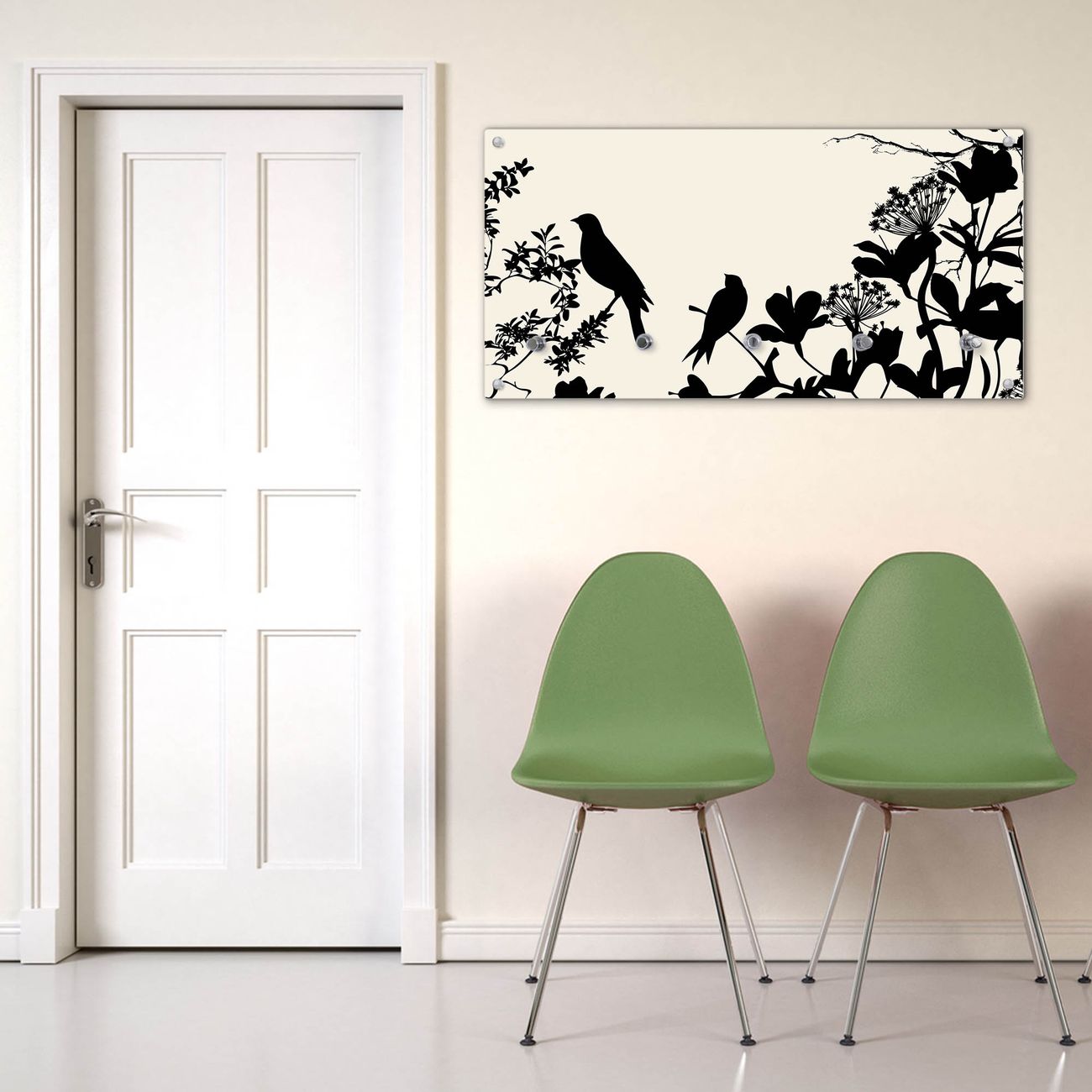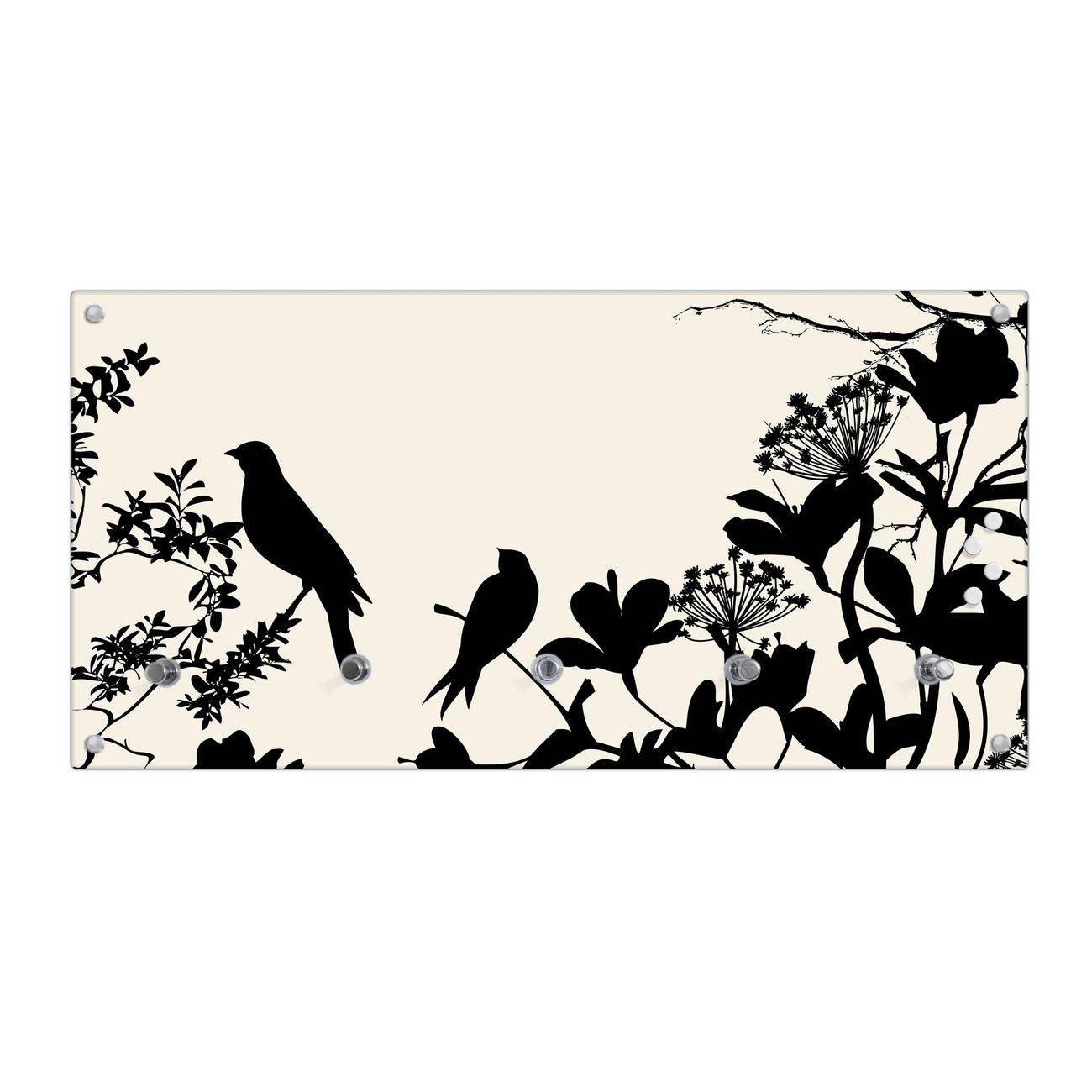 Wandgarderobe Glas 80x40cm Motiv Vögel Schattenriß