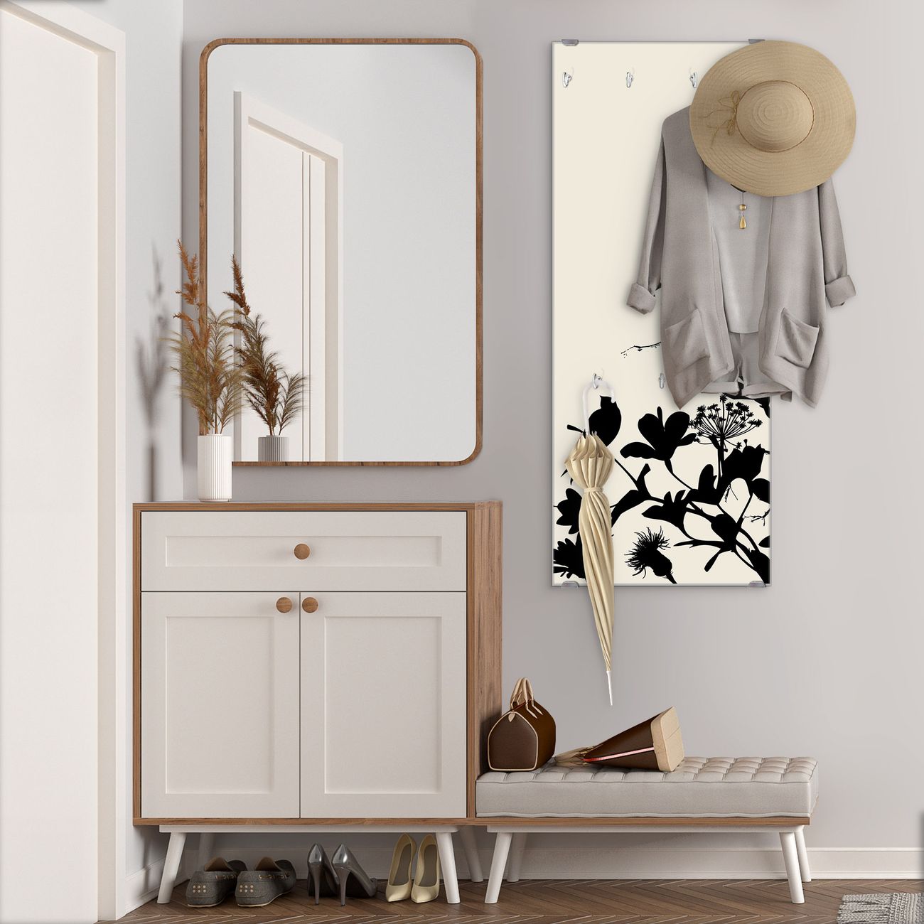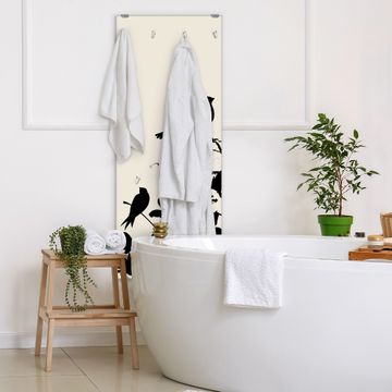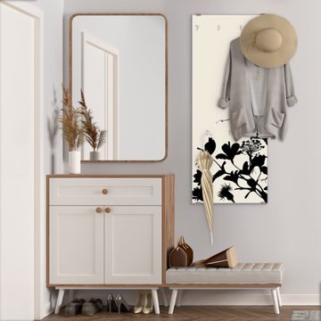 FUNKTION: Die banjado Wandgarderobe mit Motiv Vögel Schattenriß ist Ihr täglicher Begleiter. Zuverlässig hängen hier Ihre Jacken und Mäntel griffbereit. Das Echtglas ist Ihr Paneel auch beschreibbar und wieder abwischbar. DESIGN: Sie erhalten eine Garderobenleiste aus elegantem Echtglas mit dem Farbbrillanten Motiv Vögel Schattenriß hinterklebt. Das Design ist zeitlos klassisch, ohne dabei auf Funktionalität zu verzichten. Suchen Sie aus einer Vielzahl von Motiven das für Ihre Einrichtung Passende aus. DETAILS: Die Flurgarderobe besteht aus 4mm gehärtetem Sicherheitsglas. Sie ist 50cm breit, 125cm hoch und 6cm tief. Die Garderobenhaken zur Selbstmontage präsentieren sich in Edelstahl-Optik, ebenso die Abstandshalter für die Wandmontage. Ihre neue Garderobe ist sofort einsatzbereit. NUTZEN: Ihre neue Garderobe hält nicht nur zuverlässig Ihre Kleidung, sie ist auch optisch ein Blickfang. Durch das Glas können Sie an der Garderobe mit wasserlöslichen Kreidestiften oder Whiteboard-Markern auch Nachrichten hinterlassen. BANJADO: Wir sind ein kleines kreatives Team aus Sachsen und entwickeln Produkte die Design und Funktionalität verbinden sollen. Viel Freude mit Ihrer neuen Garderobe wünscht das banjado-Team!