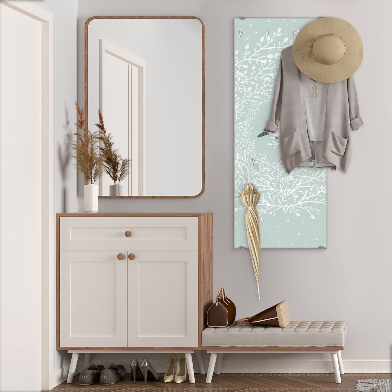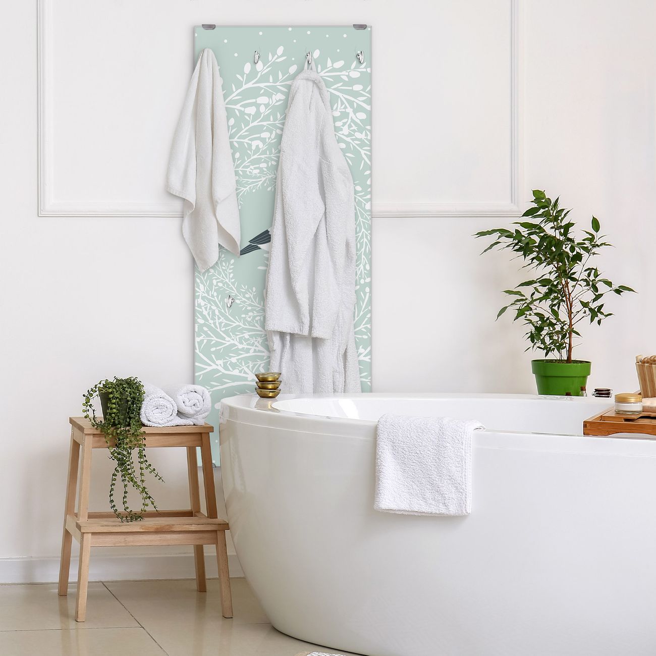Flurgarderobe Glas 50x125cm Motiv Vogel im Kranz