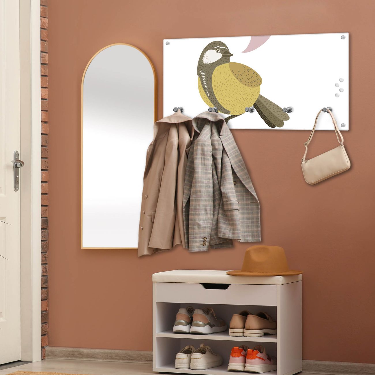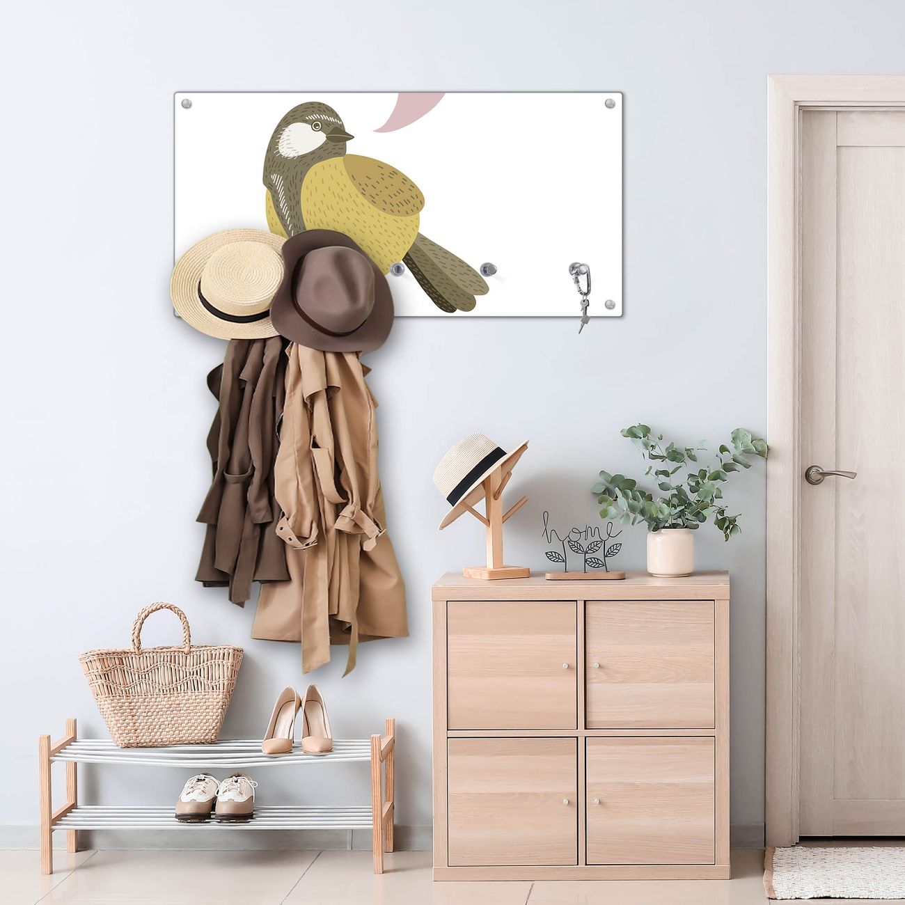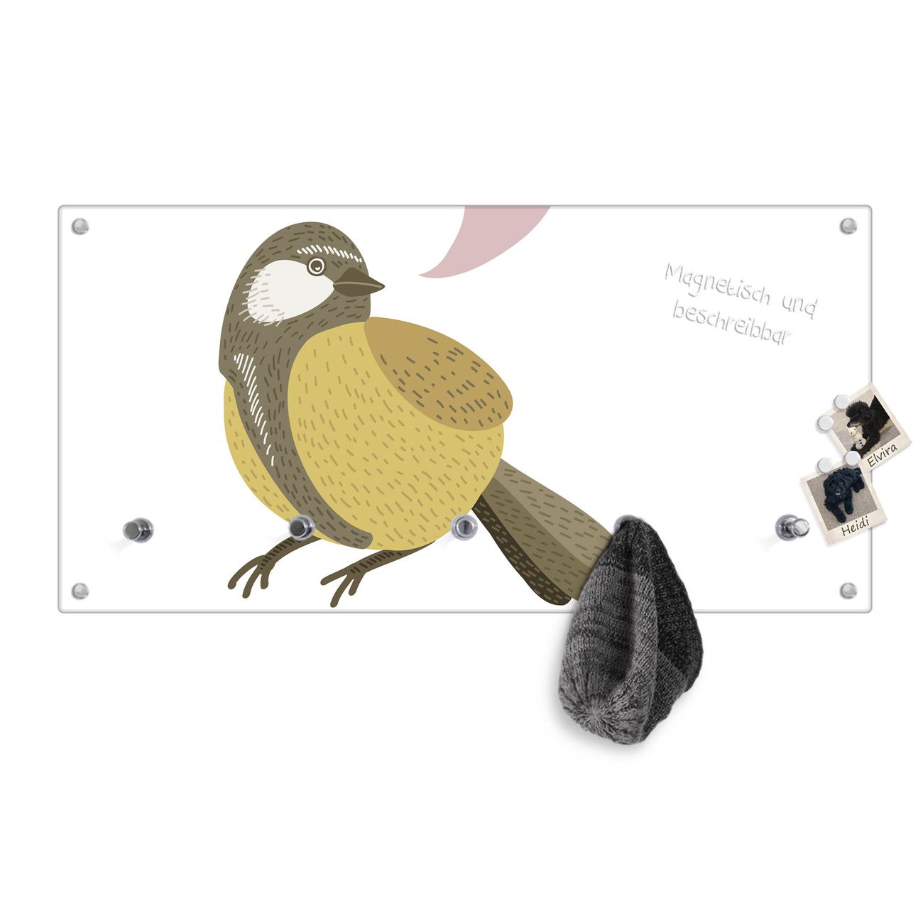 Wandgarderobe Glas 80x40cm Motiv Vogel mit Sprechblase
