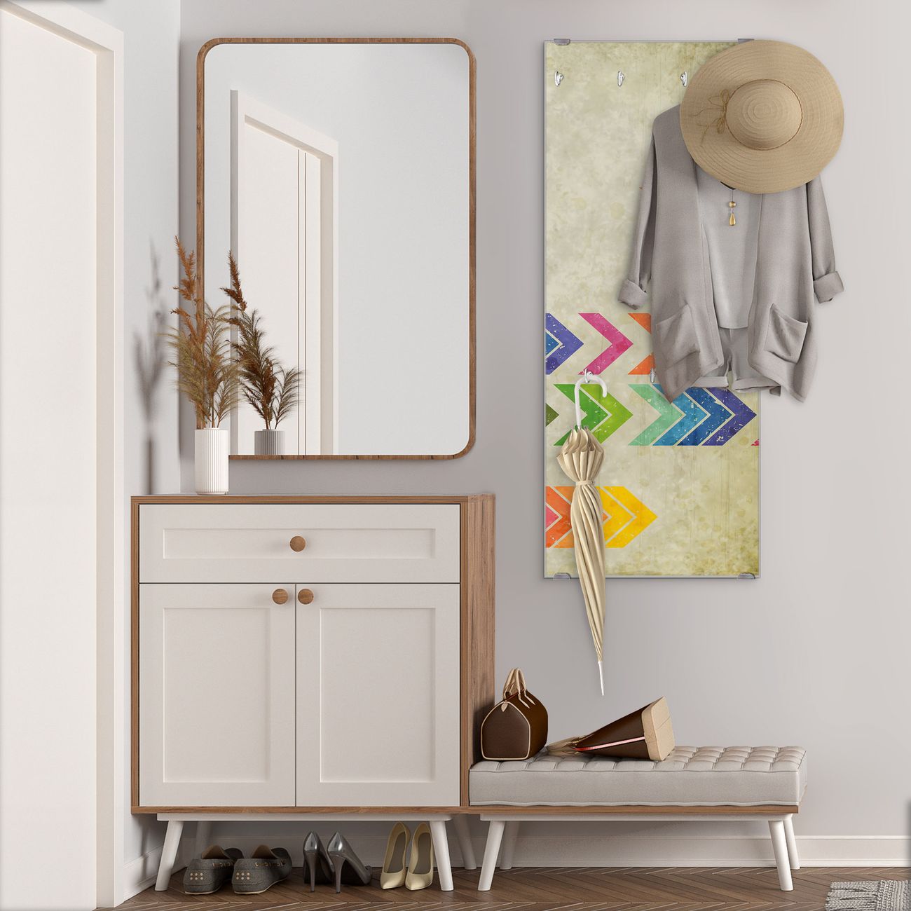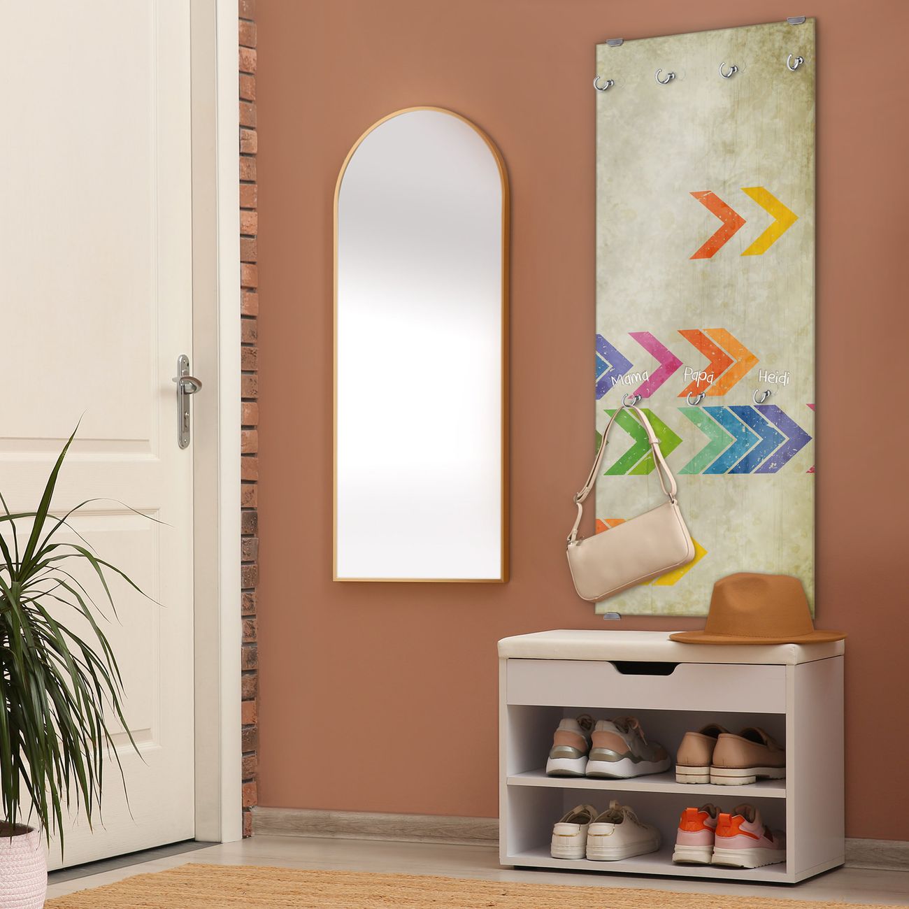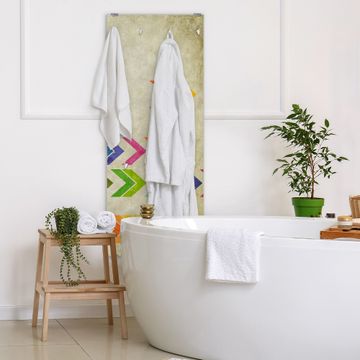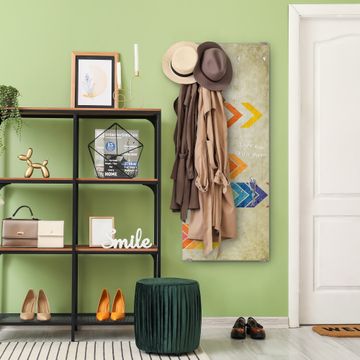 FUNKTION: Die banjado Wandgarderobe mit Motiv Vorspulen ist Ihr täglicher Begleiter. Zuverlässig hängen hier Ihre Jacken und Mäntel griffbereit. Das Echtglas ist Ihr Paneel auch beschreibbar und wieder abwischbar. DESIGN: Sie erhalten eine Garderobenleiste aus elegantem Echtglas mit dem Farbbrillanten Motiv Vorspulen hinterklebt. Das Design ist zeitlos klassisch, ohne dabei auf Funktionalität zu verzichten. Suchen Sie aus einer Vielzahl von Motiven das für Ihre Einrichtung Passende aus. DETAILS: Die Flurgarderobe besteht aus 4mm gehärtetem Sicherheitsglas. Sie ist 50cm breit, 125cm hoch und 6cm tief. Die Garderobenhaken zur Selbstmontage präsentieren sich in Edelstahl-Optik, ebenso die Abstandshalter für die Wandmontage. Ihre neue Garderobe ist sofort einsatzbereit. NUTZEN: Ihre neue Garderobe hält nicht nur zuverlässig Ihre Kleidung, sie ist auch optisch ein Blickfang. Durch das Glas können Sie an der Garderobe mit wasserlöslichen Kreidestiften oder Whiteboard-Markern auch Nachrichten hinterlassen. BANJADO: Wir sind ein kleines kreatives Team aus Sachsen und entwickeln Produkte die Design und Funktionalität verbinden sollen. Viel Freude mit Ihrer neuen Garderobe wünscht das banjado-Team!