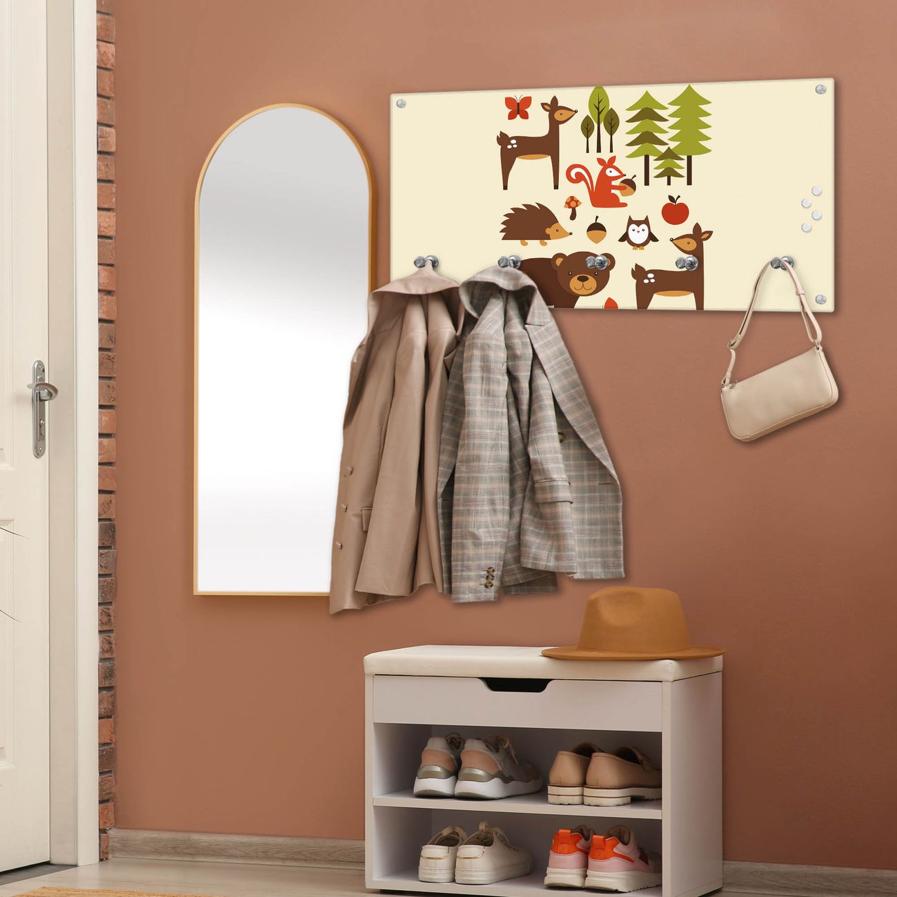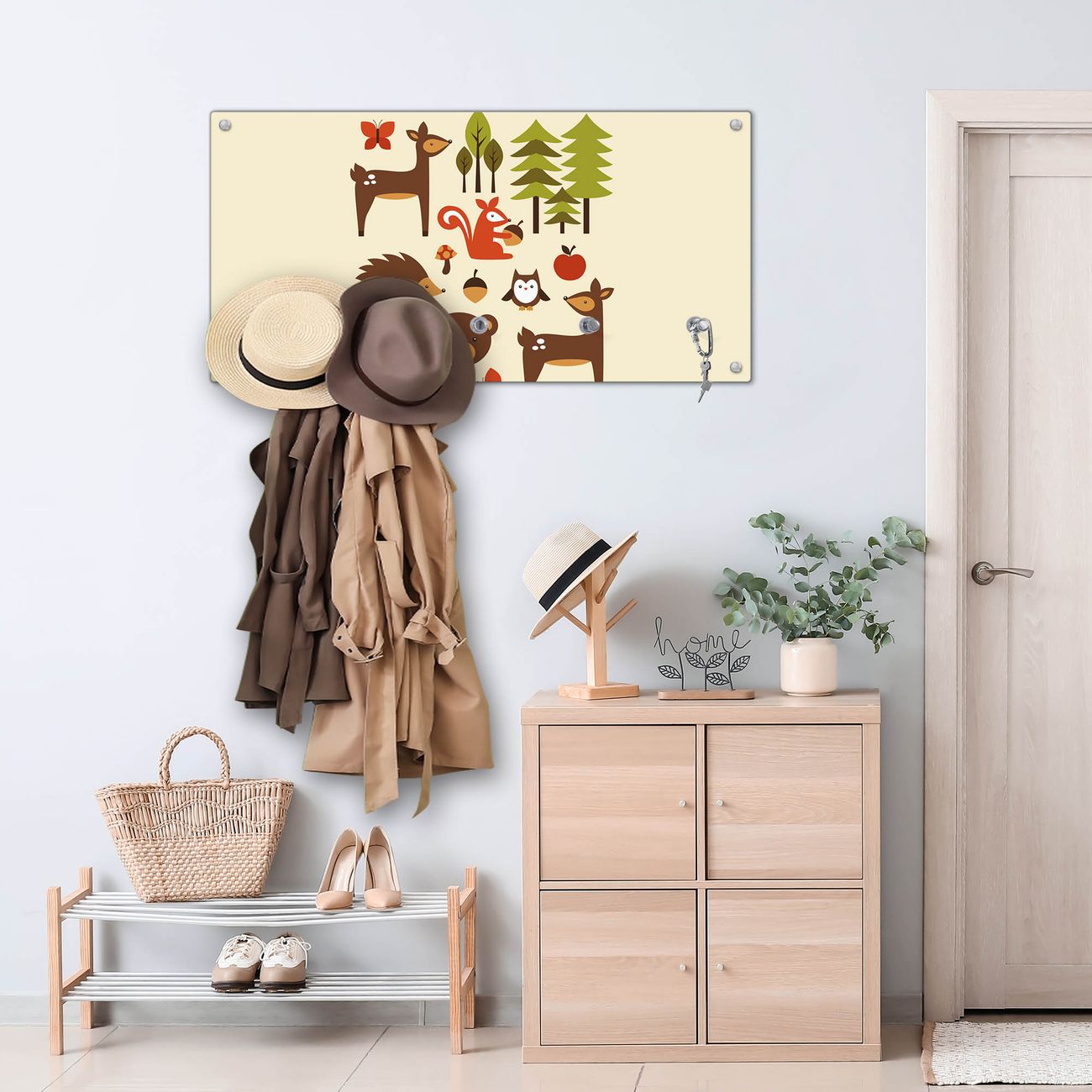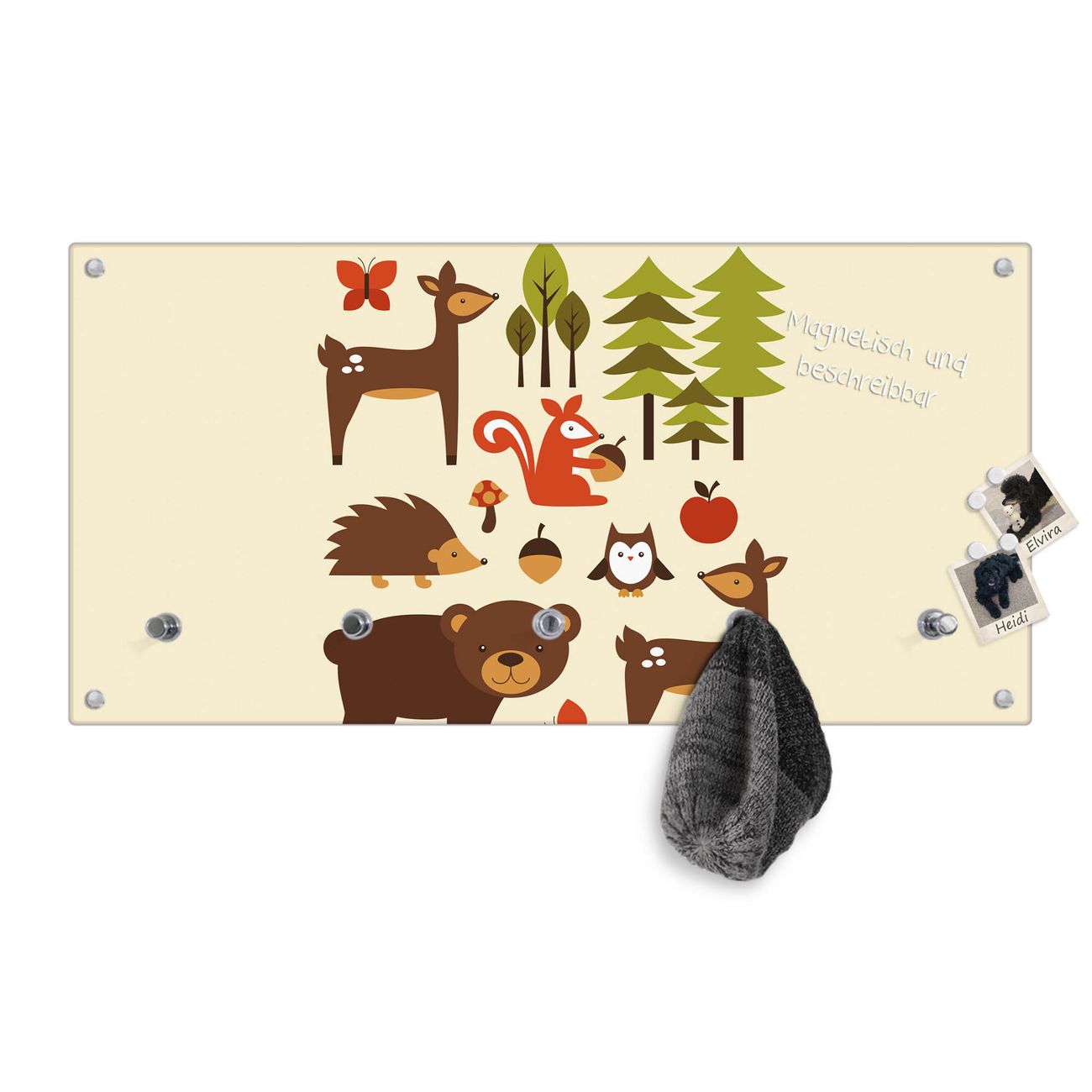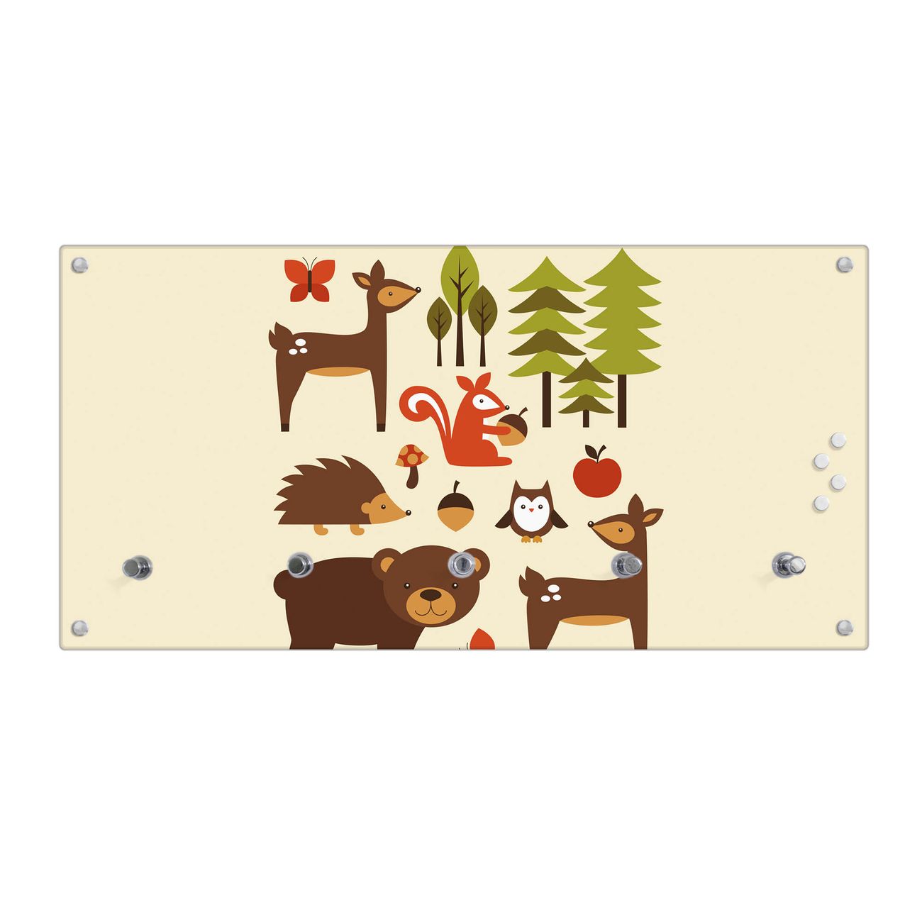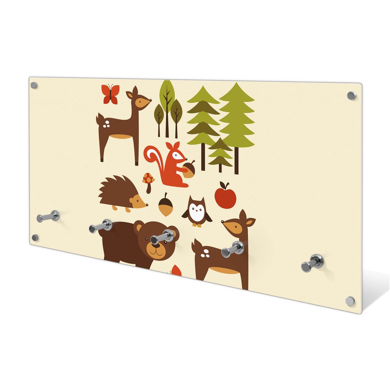 Wandgarderobe Glas 80x40cm Motiv Waldfreunde