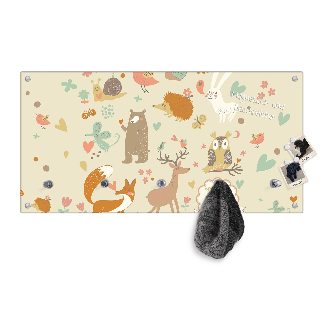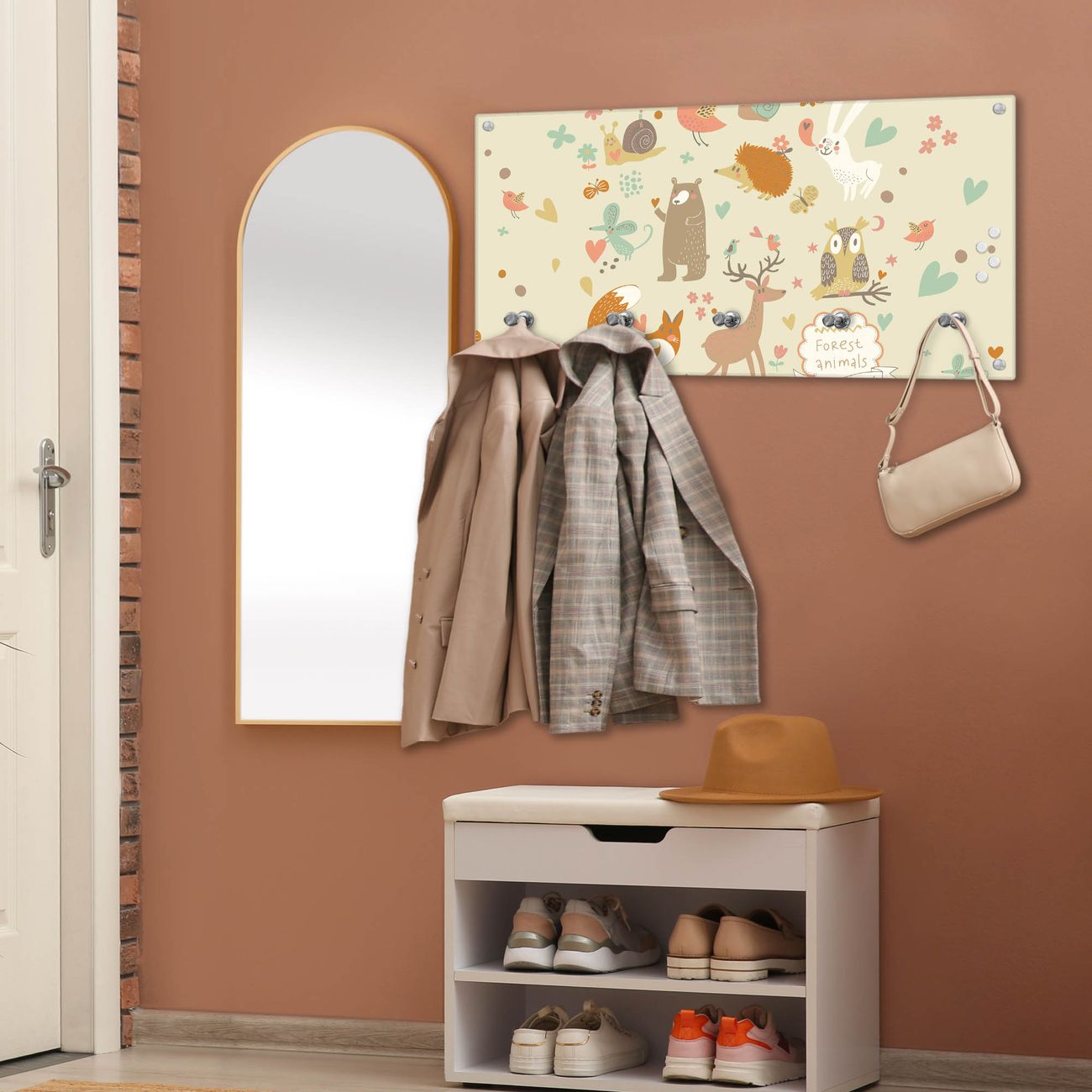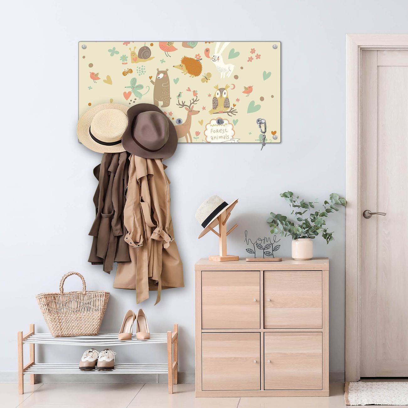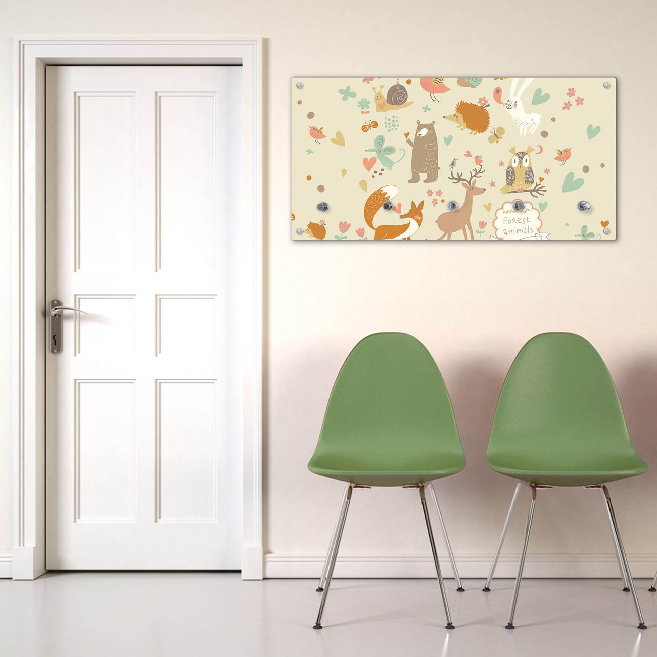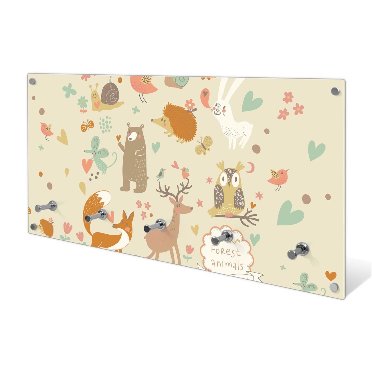 Wandgarderobe Glas 80x40cm Motiv Waldtiere