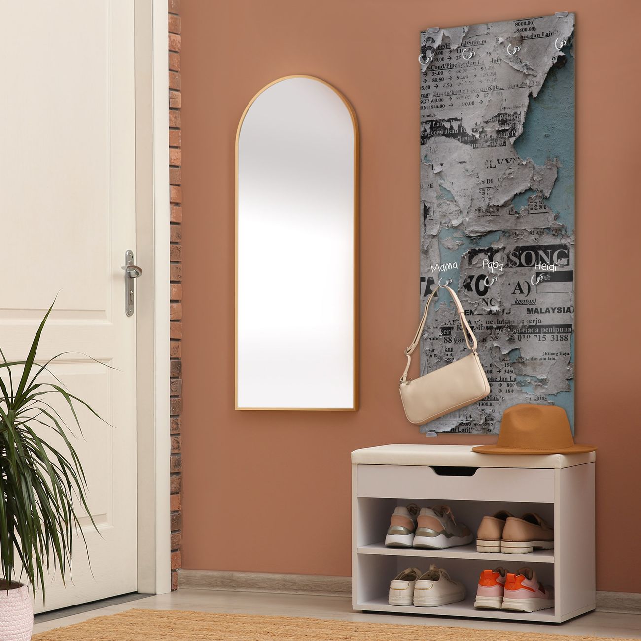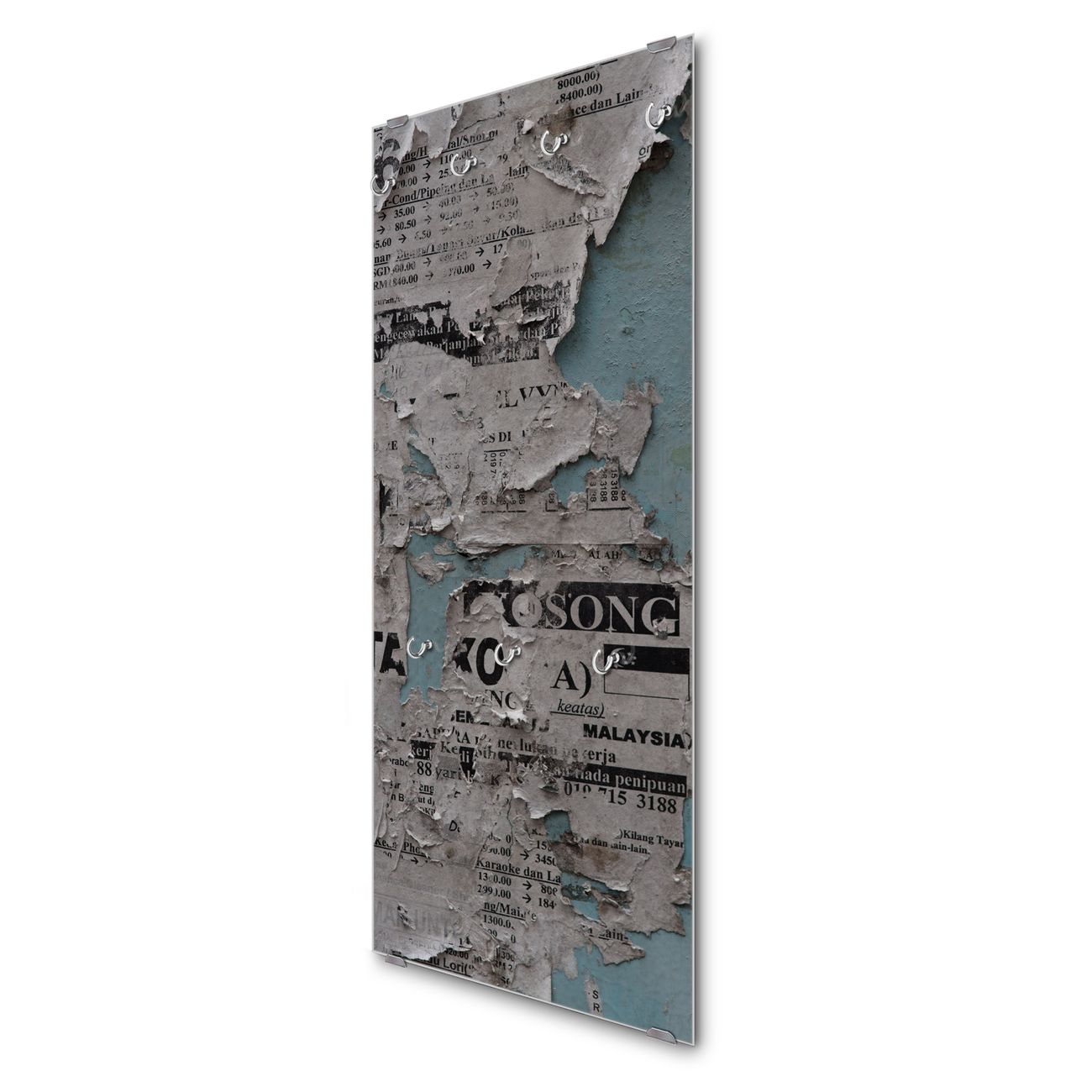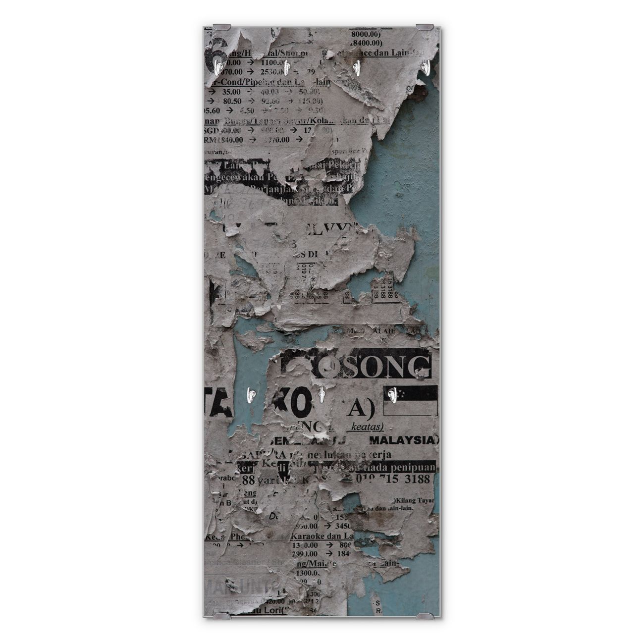 Flurgarderobe Glas 50x125cm Motiv Wand mit Zeitungen
