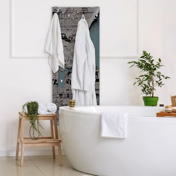 FUNKTION: Die banjado Wandgarderobe mit Motiv Wand mit Zeitungen ist Ihr täglicher Begleiter. Zuverlässig hängen hier Ihre Jacken und Mäntel griffbereit. Das Echtglas ist Ihr Paneel auch beschreibbar und wieder abwischbar. DESIGN: Sie erhalten eine Garderobenleiste aus elegantem Echtglas mit dem Farbbrillanten Motiv Wand mit Zeitungen hinterklebt. Das Design ist zeitlos klassisch, ohne dabei auf Funktionalität zu verzichten. Suchen Sie aus einer Vielzahl von Motiven das für Ihre Einrichtung Passende aus. DETAILS: Die Flurgarderobe besteht aus 4mm gehärtetem Sicherheitsglas. Sie ist 50cm breit, 125cm hoch und 6cm tief. Die Garderobenhaken zur Selbstmontage präsentieren sich in Edelstahl-Optik, ebenso die Abstandshalter für die Wandmontage. Ihre neue Garderobe ist sofort einsatzbereit. NUTZEN: Ihre neue Garderobe hält nicht nur zuverlässig Ihre Kleidung, sie ist auch optisch ein Blickfang. Durch das Glas können Sie an der Garderobe mit wasserlöslichen Kreidestiften oder Whiteboard-Markern auch Nachrichten hinterlassen. BANJADO: Wir sind ein kleines kreatives Team aus Sachsen und entwickeln Produkte die Design und Funktionalität verbinden sollen. Viel Freude mit Ihrer neuen Garderobe wünscht das banjado-Team!