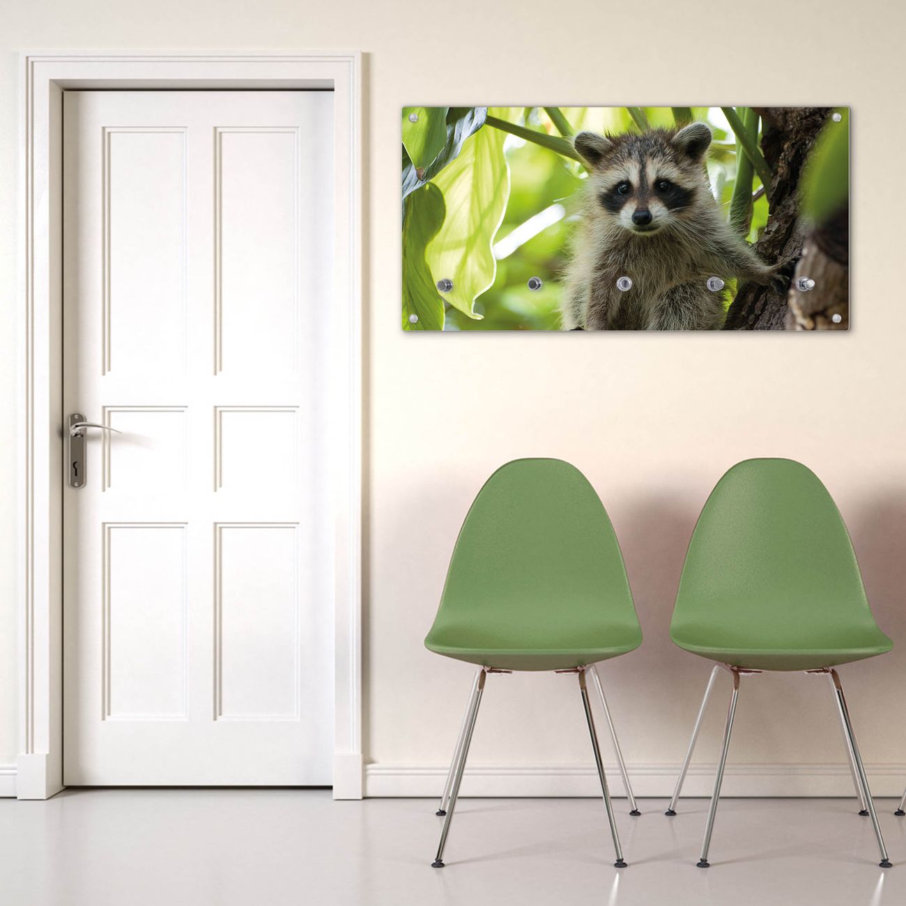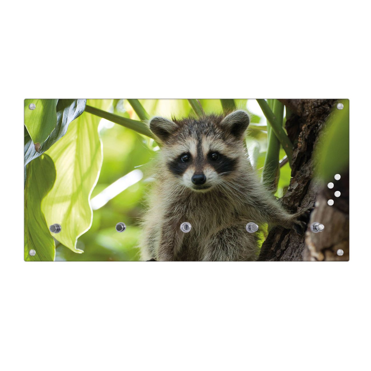 Wandgarderobe Glas 80x40cm Motiv Waschbär