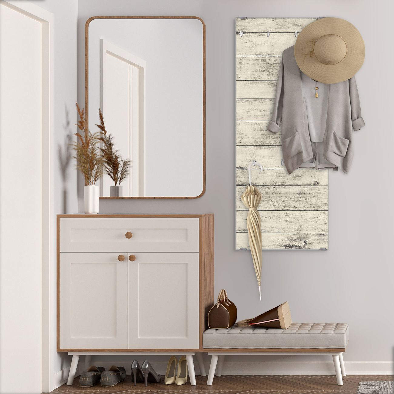 Flurgarderobe Glas 50x125cm Motiv Weiße Planken H