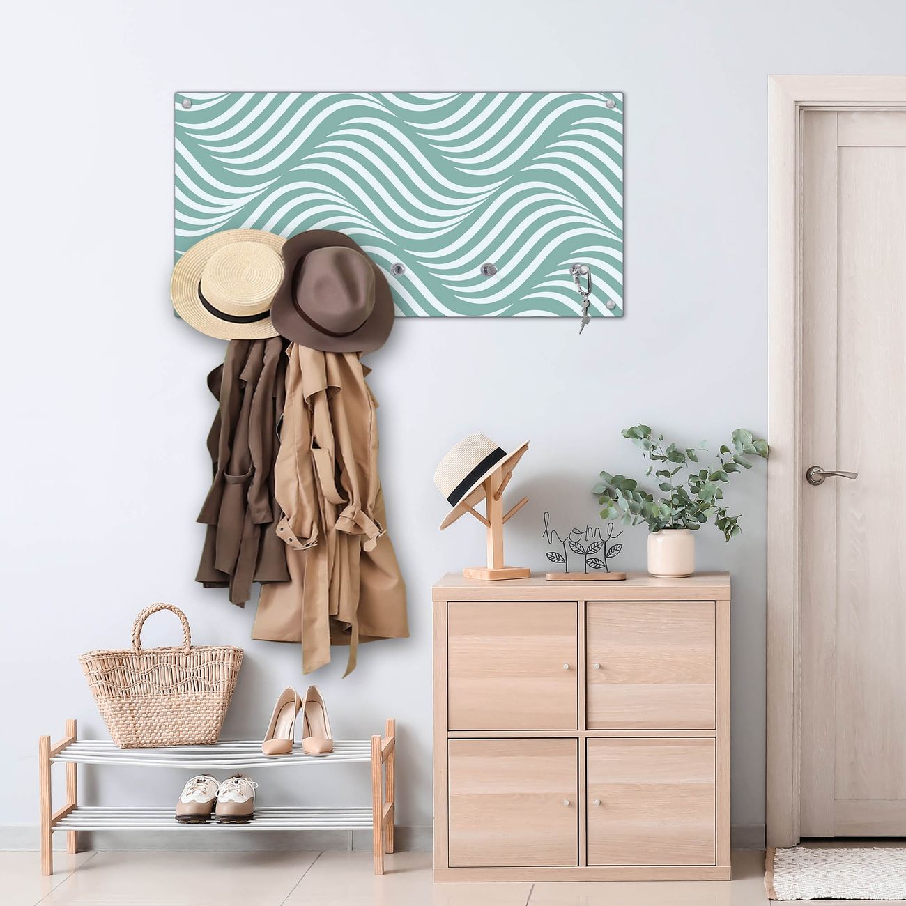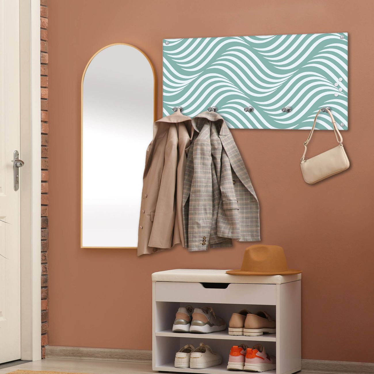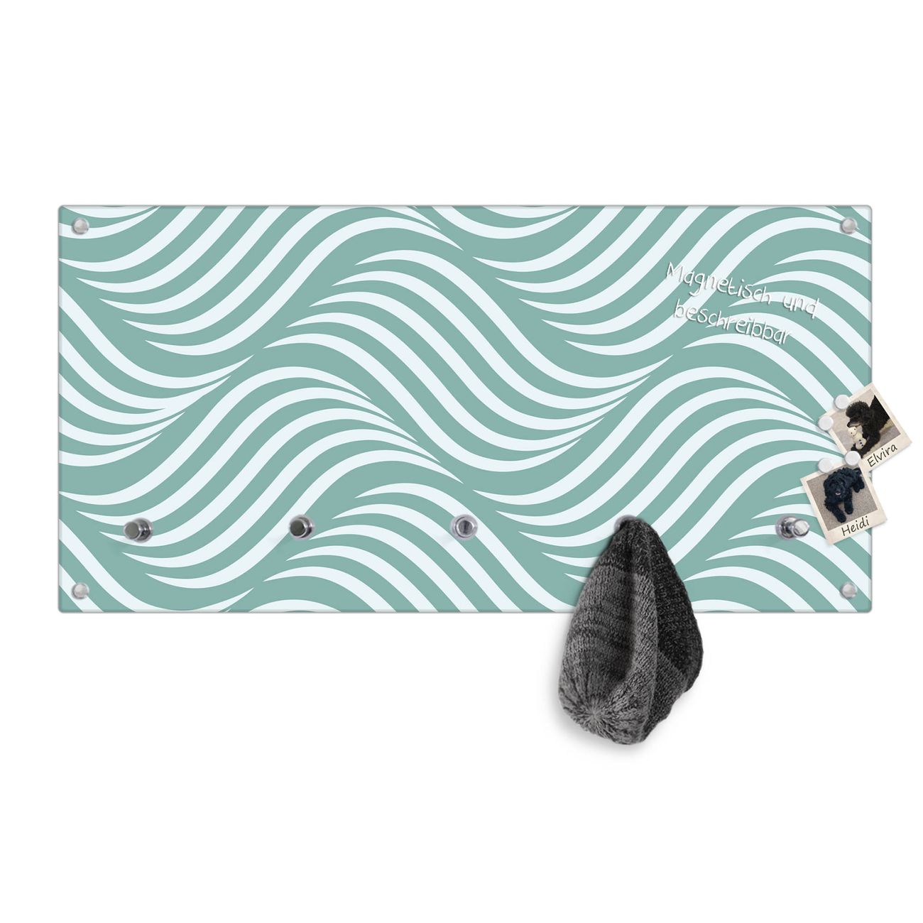 Wandgarderobe Glas 80x40cm Motiv Wellen Lindgrün