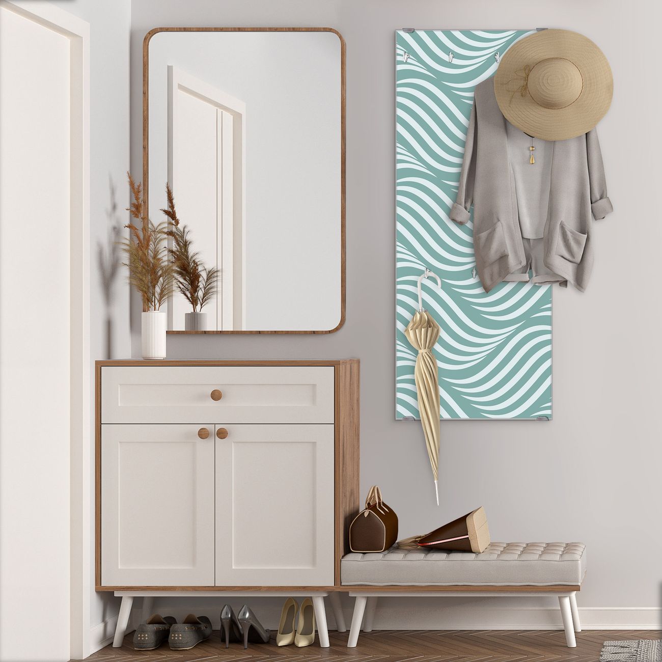 Flurgarderobe Glas 50x125cm Motiv Wellen Lindgrün