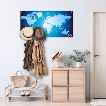 Wandgarderobe Glas 80x40cm Motiv Weltkarte